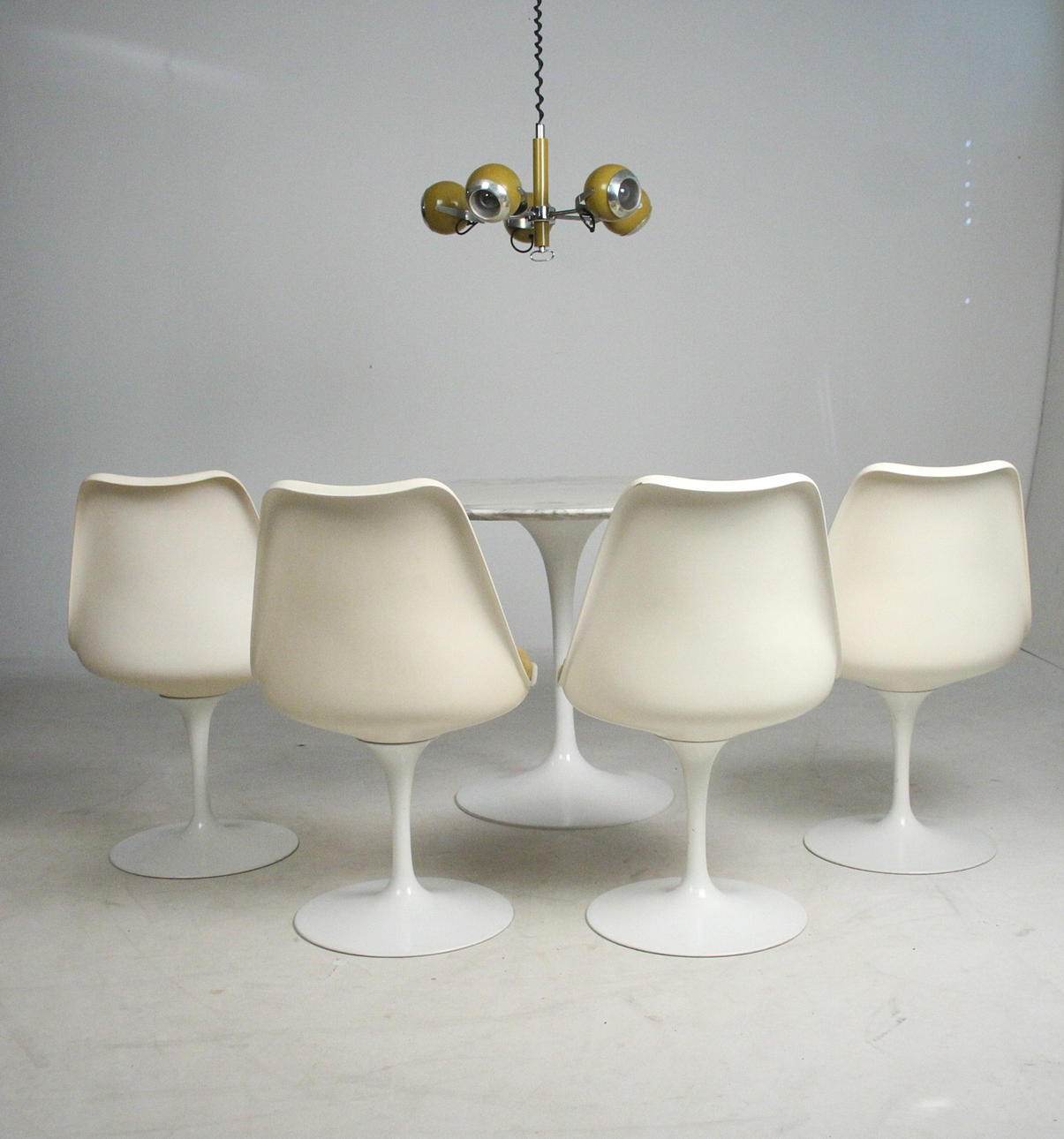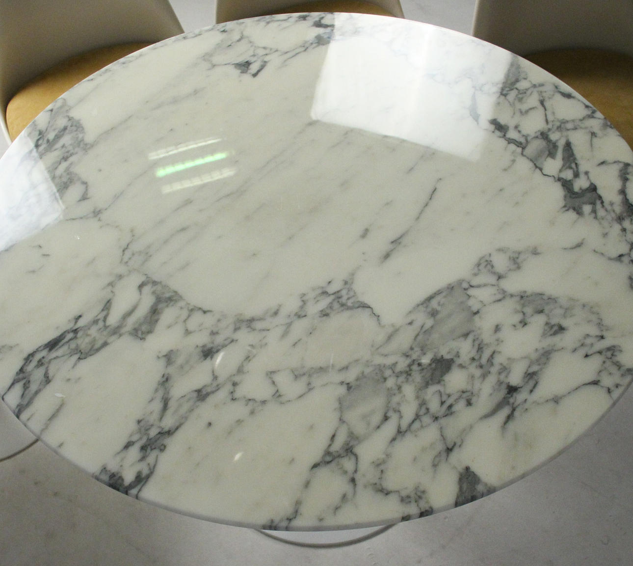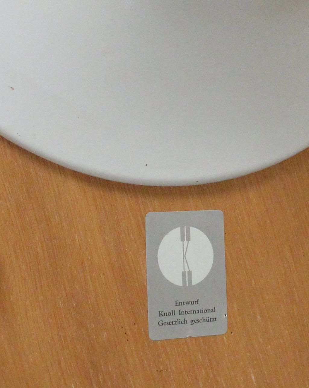 Good general age-related usage condition. A few scratches on the table top, a 0.5 cm chip on the surface of the table top. Isolated few scratches and stains on all frame parts.