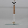 Frame in chromed metal. Detail in stained hardwood. Glass top with etched and painted decoration. Two bright spots. Diameter approx. 50, height 60 cm.