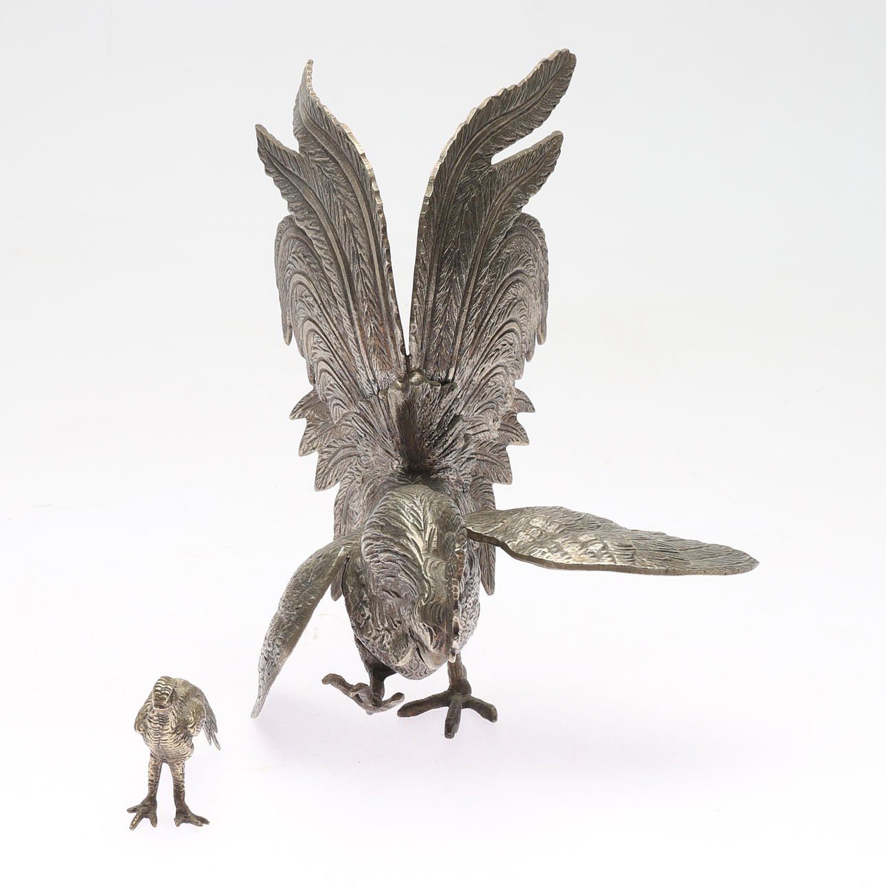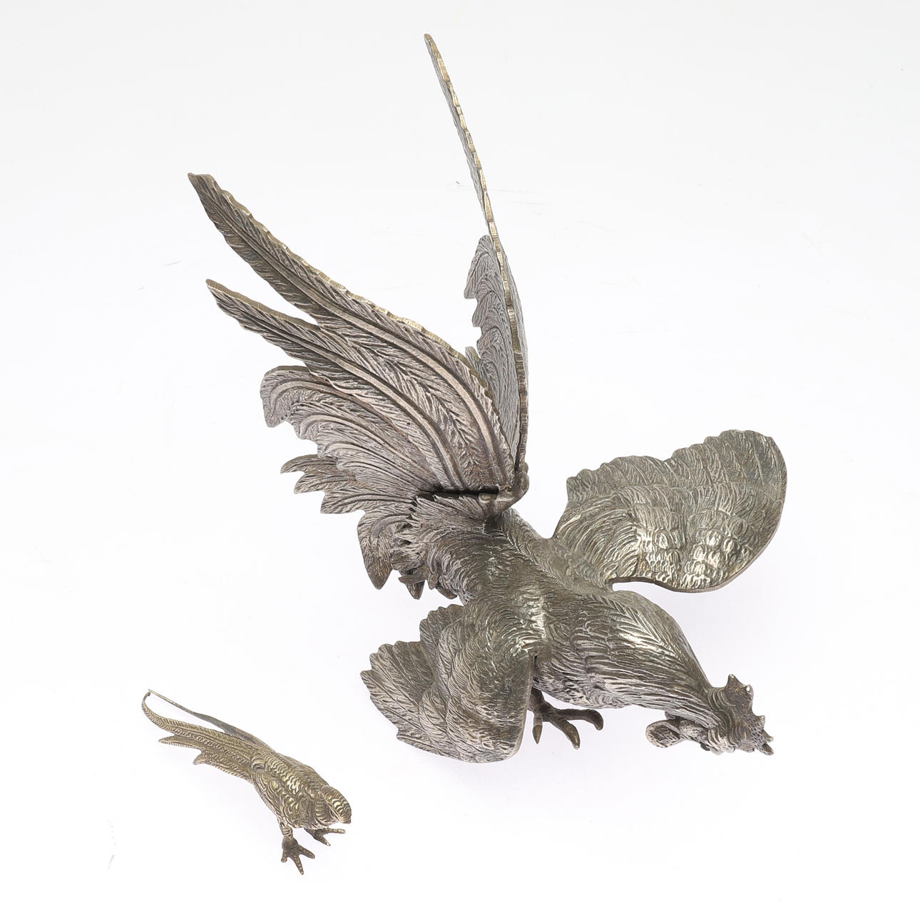 2245117. TABLE DECORATIONS, 2 pieces, nickel silver, birds, 1900s.