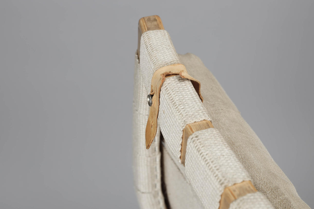 BRUNO MATHSSON. Armchair, "Eva" with high back, beech, saddle girth, Dux.