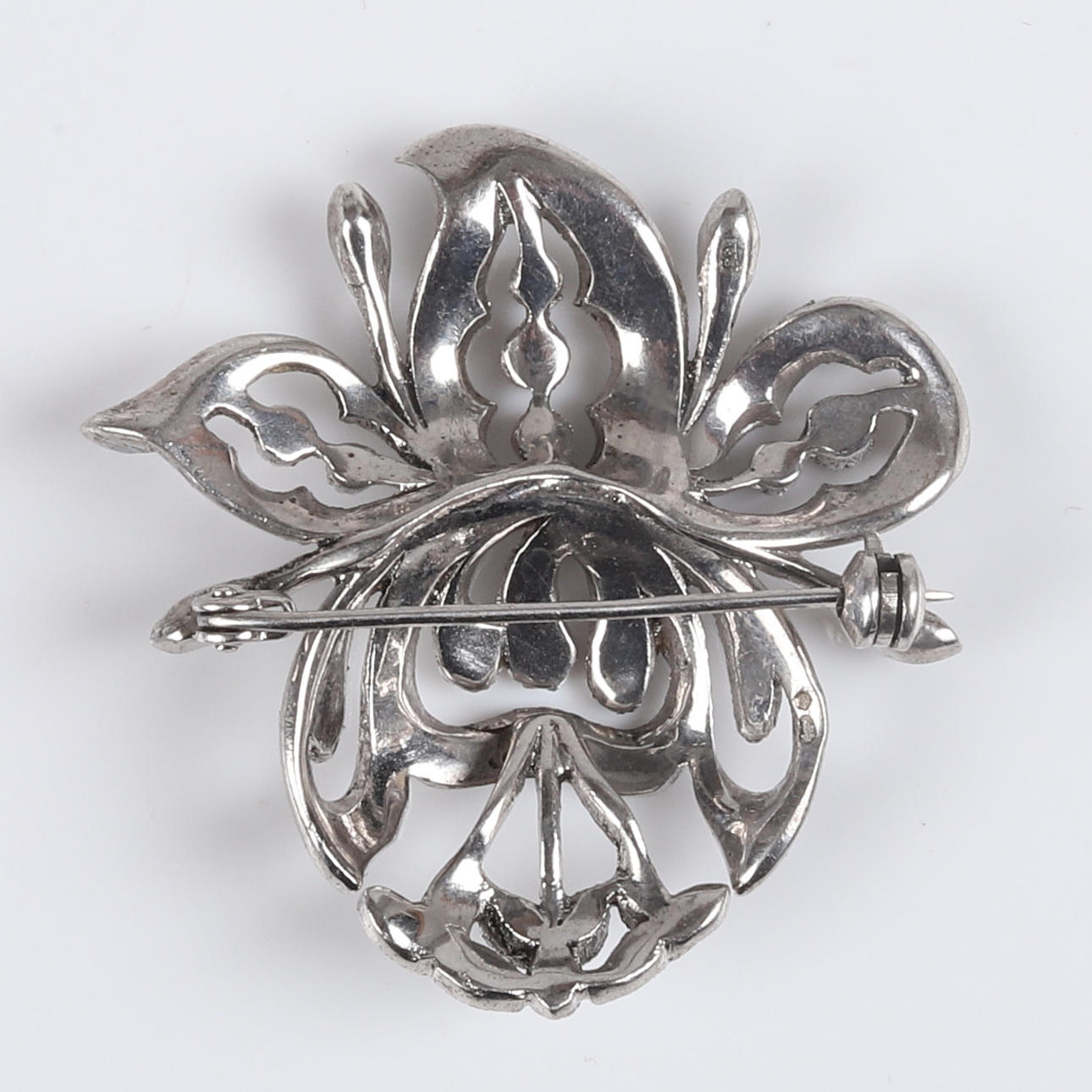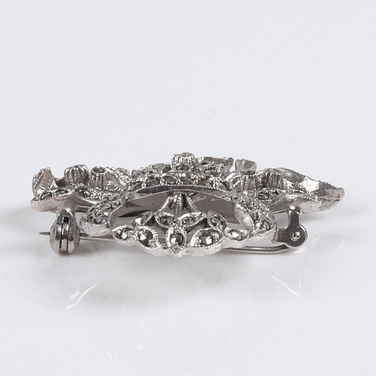 Brooch in silver with ground marcasite Width 4 cm Stamped 835 Weight 12 grams.