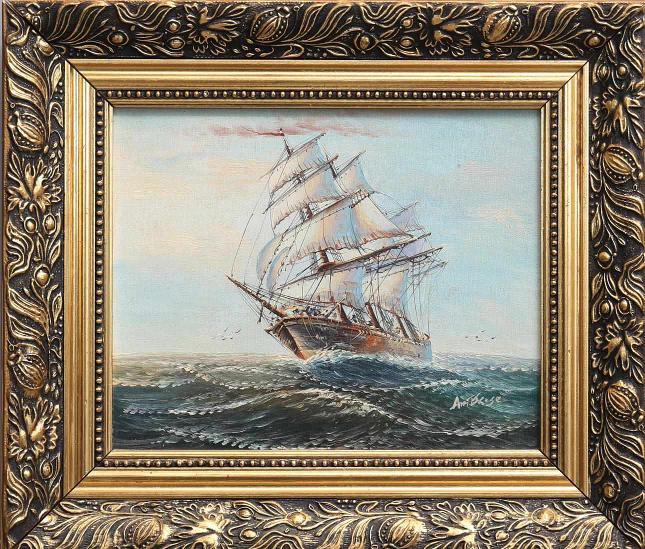 2254079. JOHN AMBROSE. Sailing ship. Oil on canvas, signed.