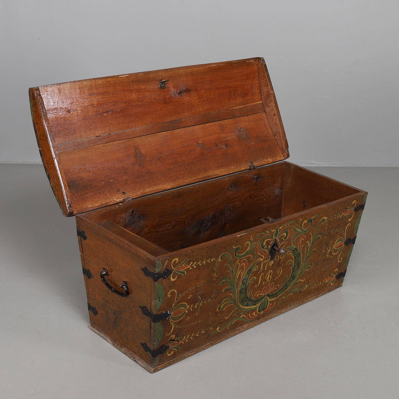 Fittings including forged locks. Marked 1799 and with the initials SBD Dimensions: length 135, depth 58, height 62 cm.