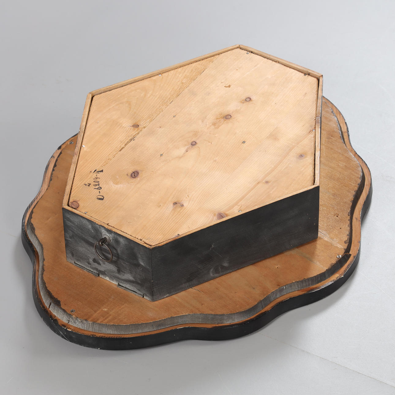 blackened frame, decoration with pearl motif, approx. 61x49 cm, key and pendant included.