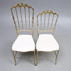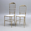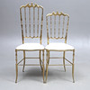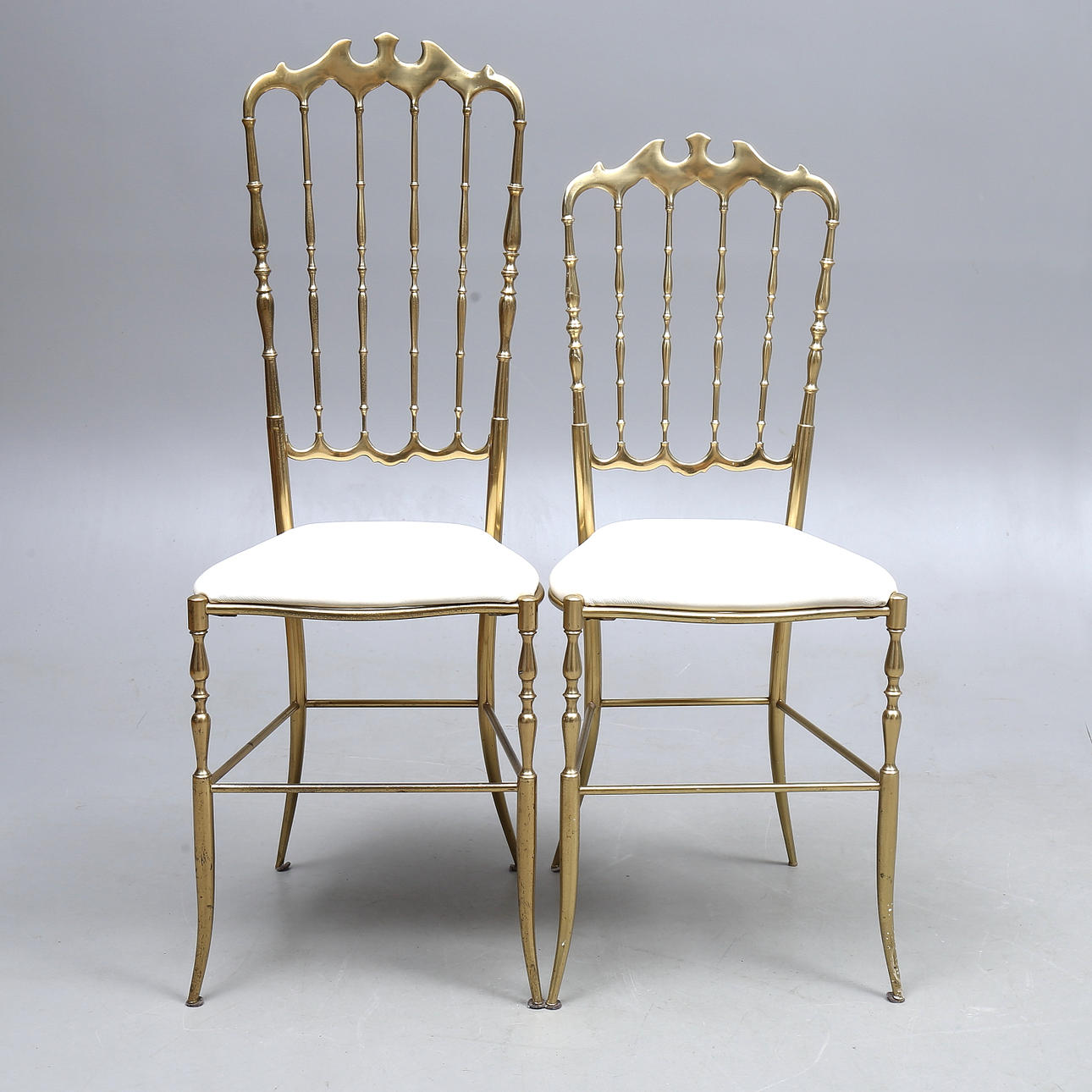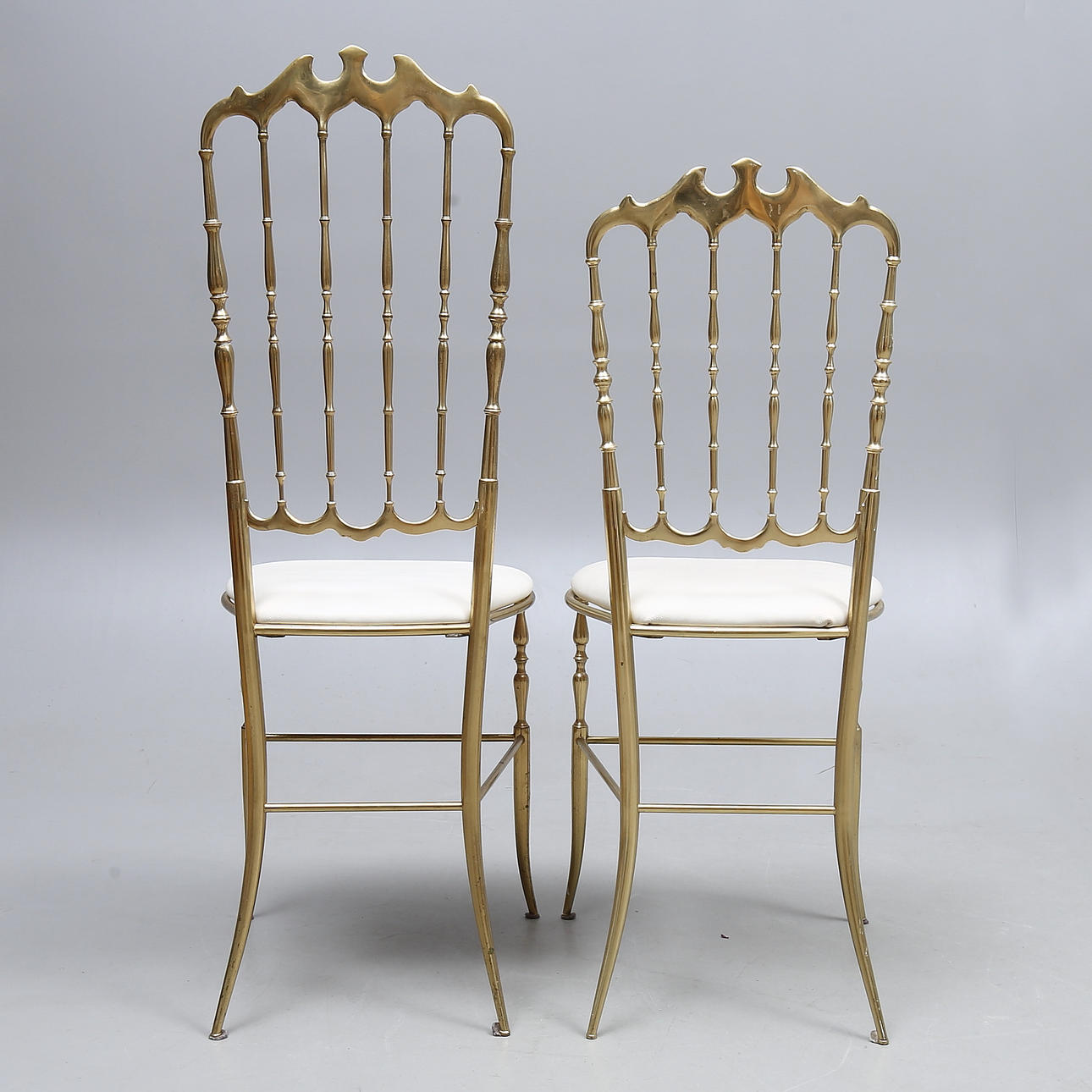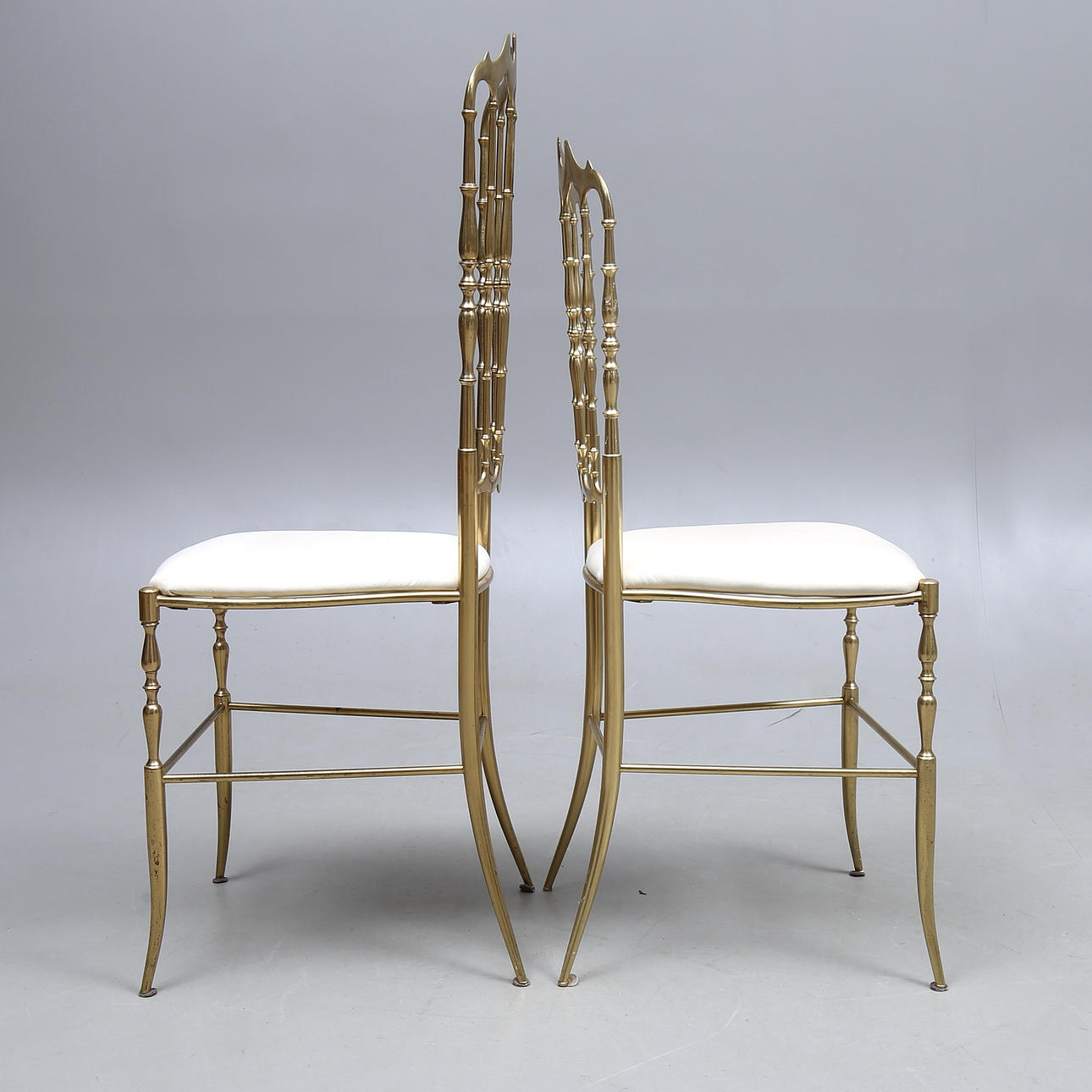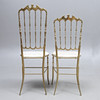 Brass frame, leather-covered seats. Seat height approx. 47, back height 94 and 105.5 cm respectively.