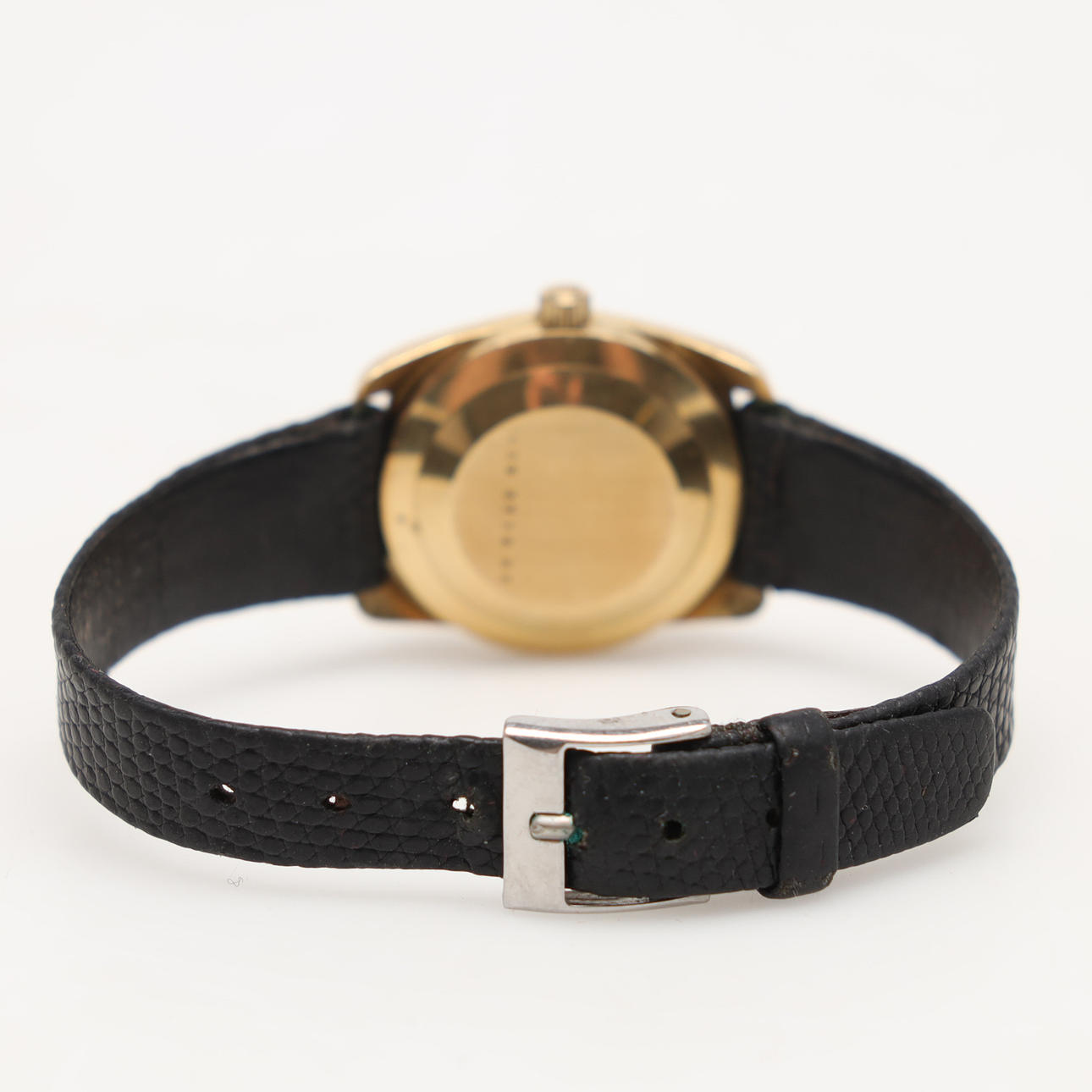 Gold colored dial with indexes, date. W approx. 25 mm. Total weight incl. strap about 25 grams. Original box included.