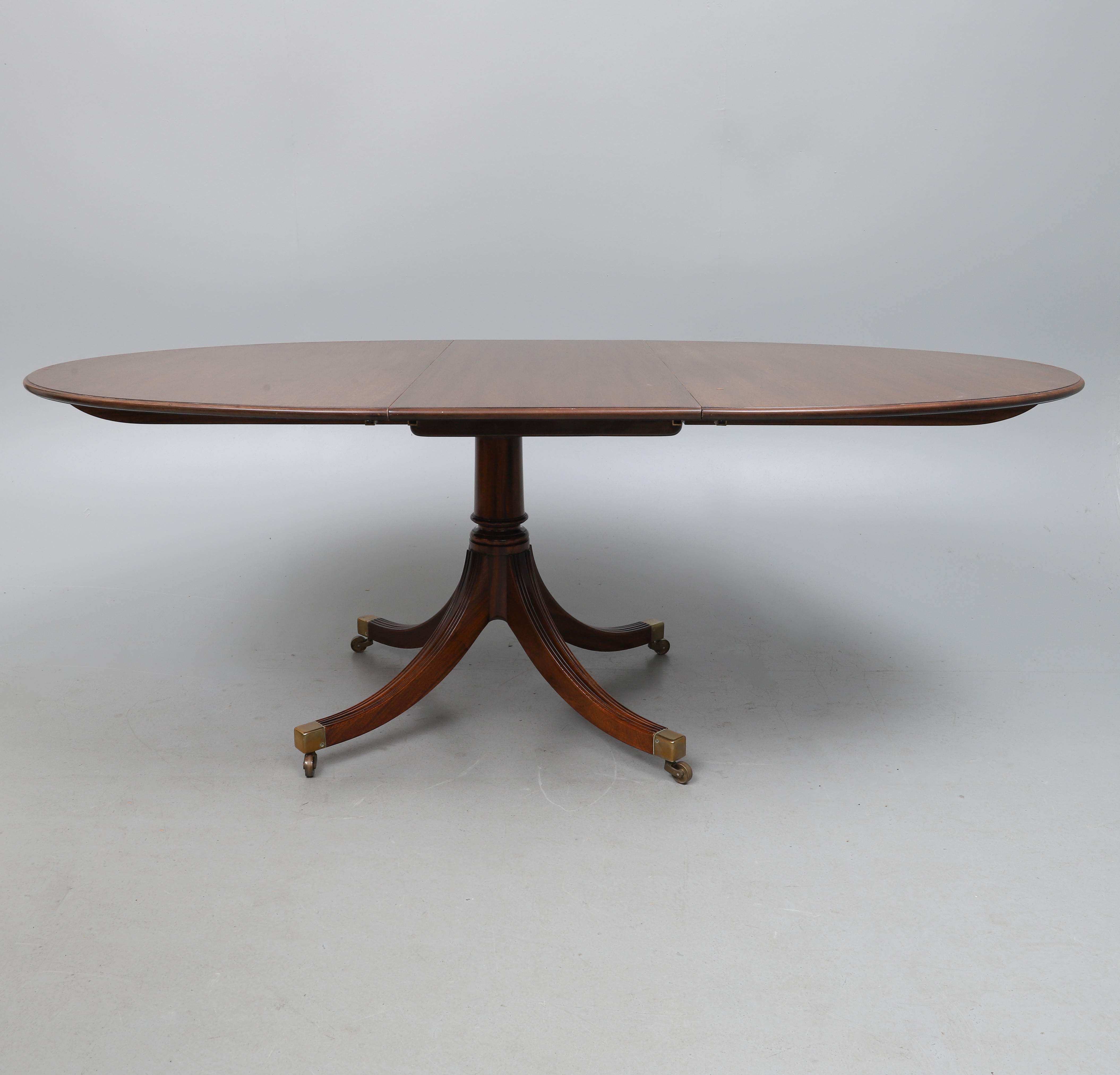 2268985. A REPRODUCTION REGENCY STYLE MAHOGANY DINING TABLE.