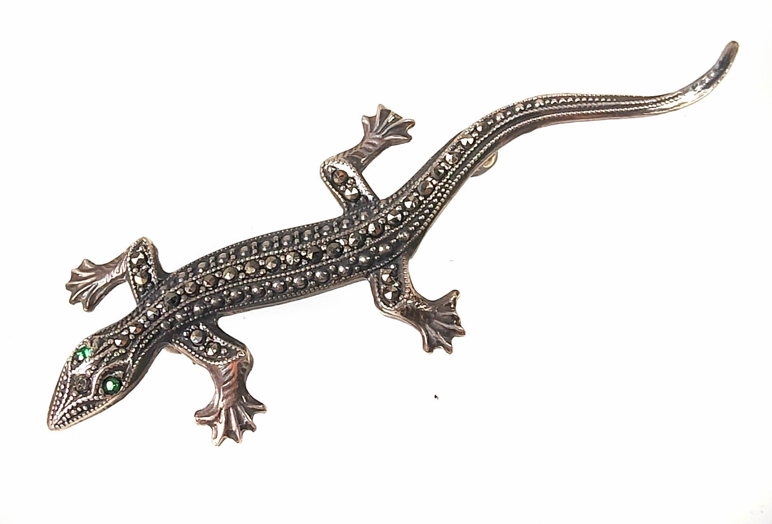 2271128. ANTIQUE BROOCH SALAMANDER, lizard, silver 835.