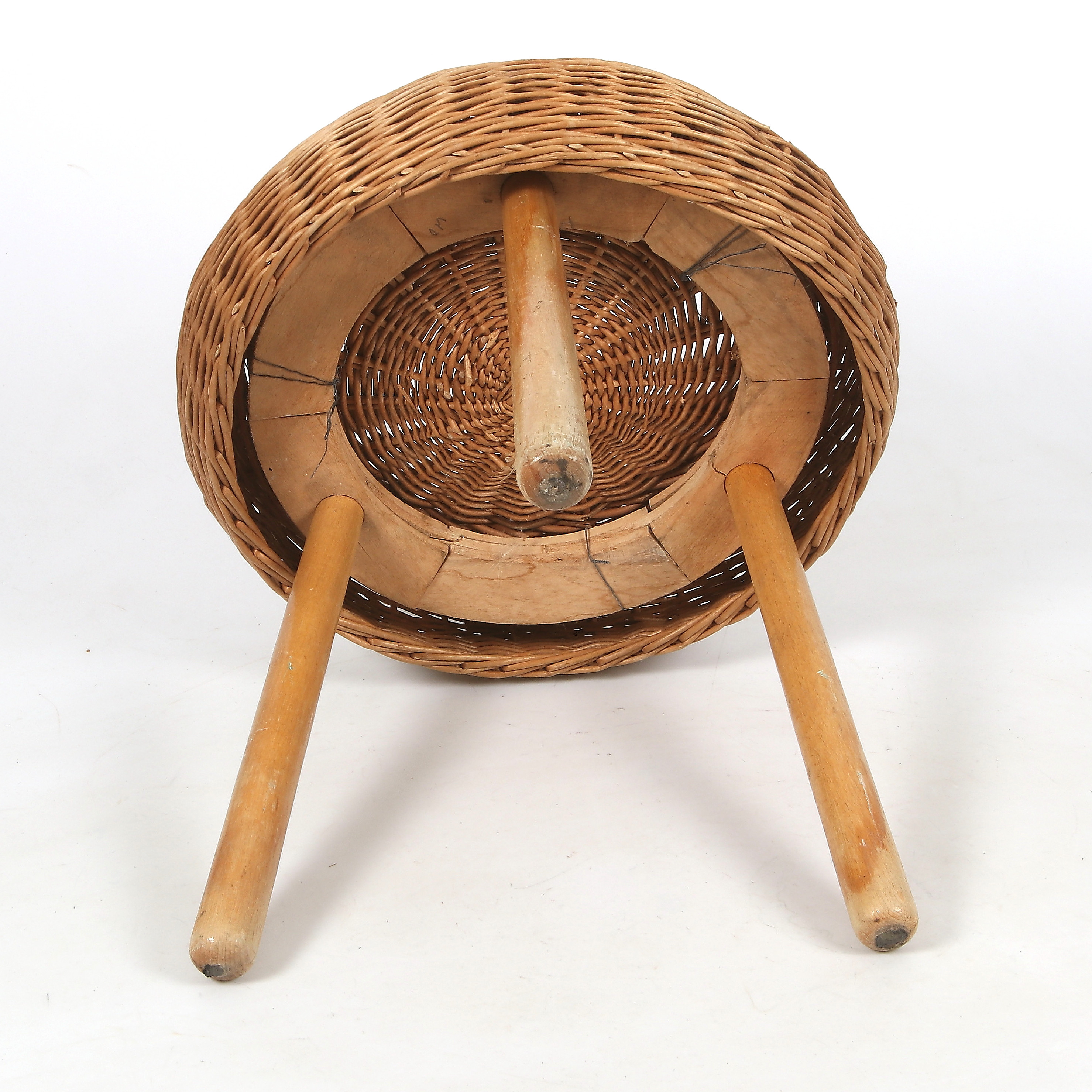 2271364. Stool, wood/rattan, 1900s.
