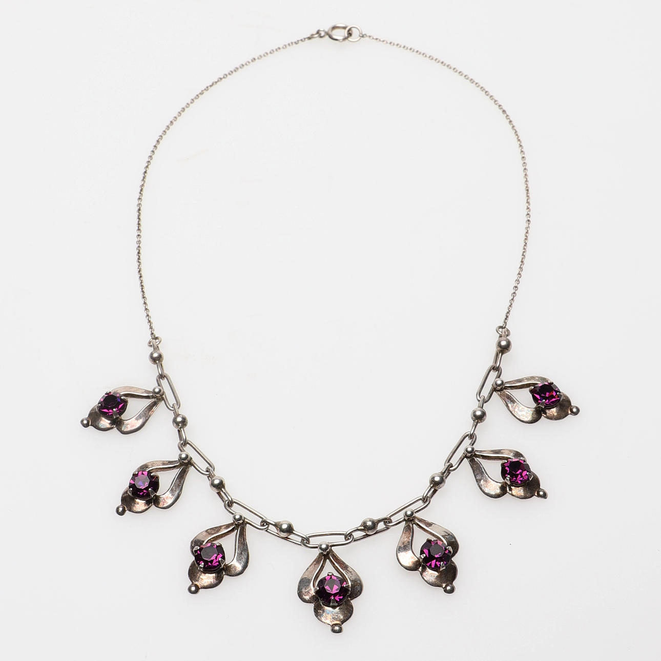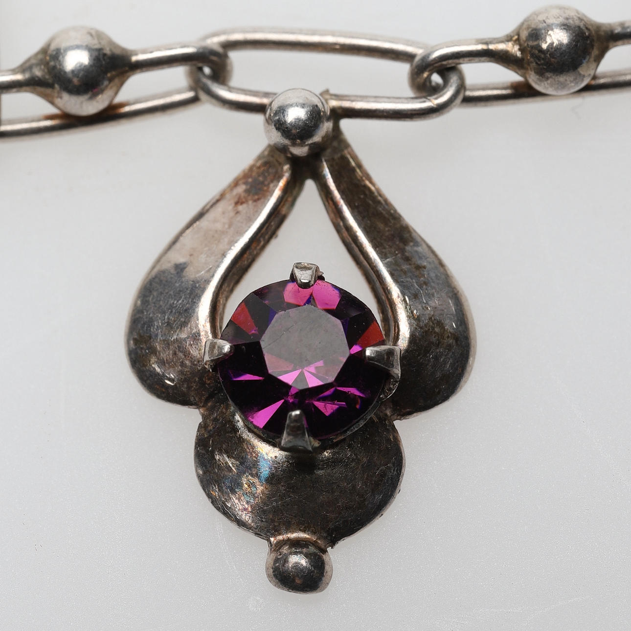 2274155. NECKLACE, silver & purple rock crystals, 1960s.