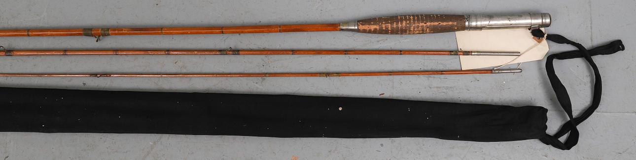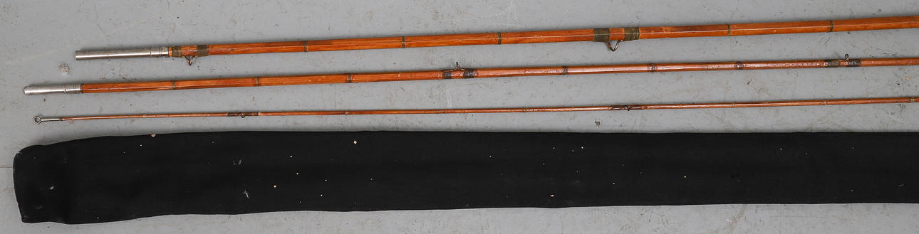 2277150. A VINTAGE SPLIT-CANE THREE -PIECE 10' TROUT ROD.