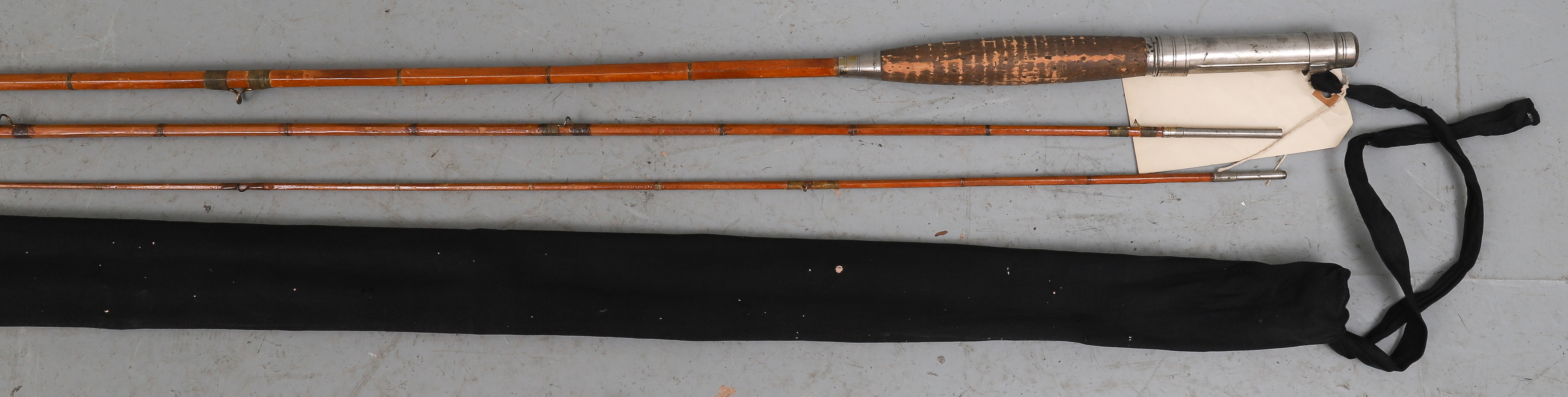 2277150. A VINTAGE SPLIT-CANE THREE -PIECE 10' TROUT ROD.