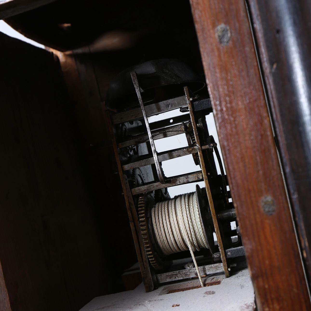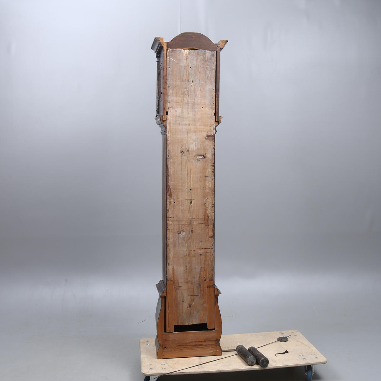 Wear, mask-heavy, refurbished, supplemented. Later skirt. Pendulum and plumb line available. Key to works is present, key to door is missing.