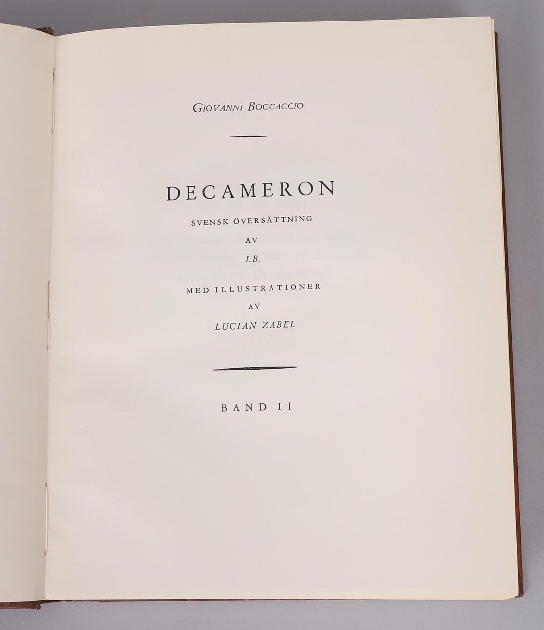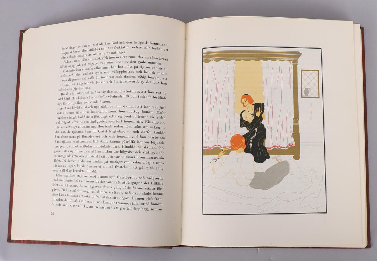 Giovanni Boccaccio, Decameron in two volumes with illustrations by Lucan Zabel, Tilgmanns Tryckeri, Helsinki 1947 In the publisher's volume.