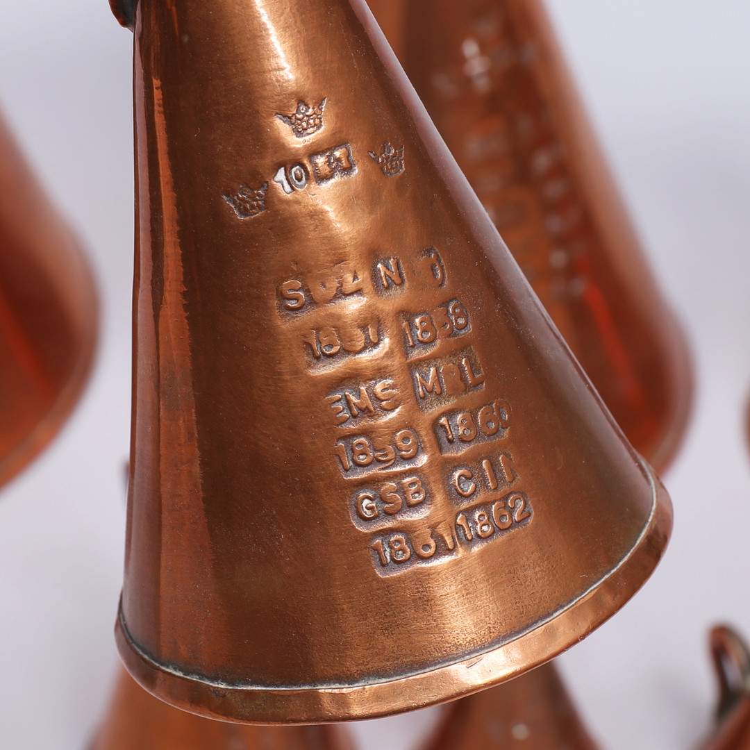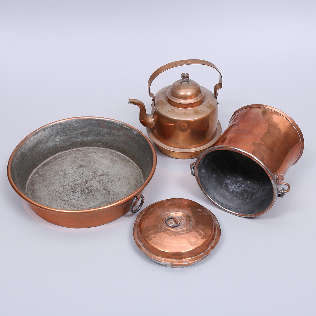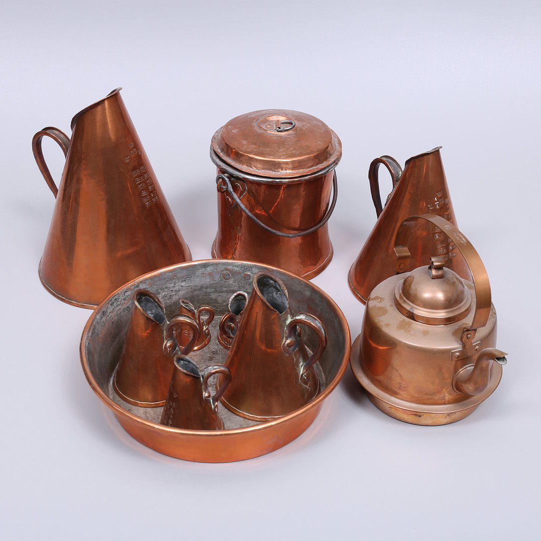 2285243. COPPER OBJECTS, 10 pcs, including measuring jugs.