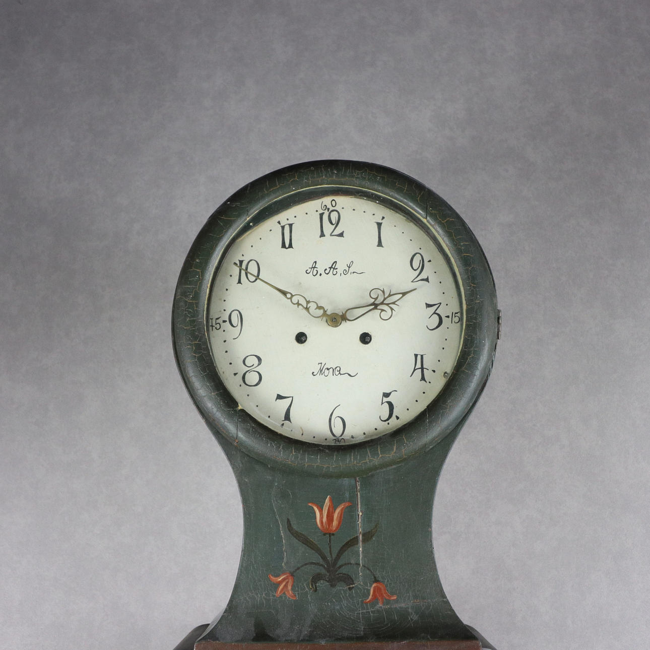 2287536. FLOOR CLOCK, Mora clock, straight model, painted case dated 1848, dial marked AAS Mora.