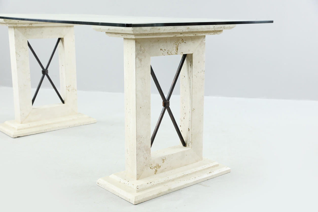 2291317. TABLE, 3 parts, stone mass, glass, 2000s.