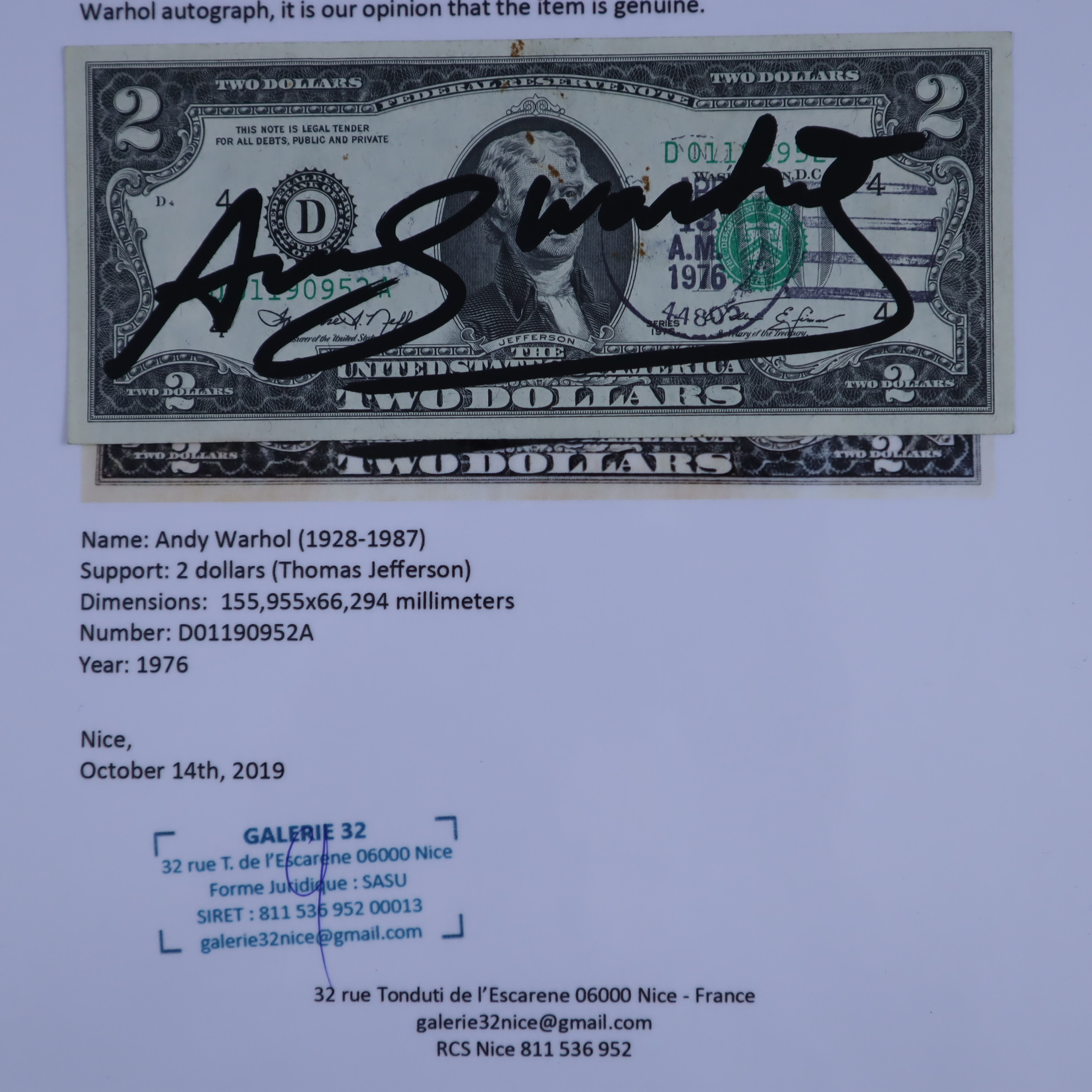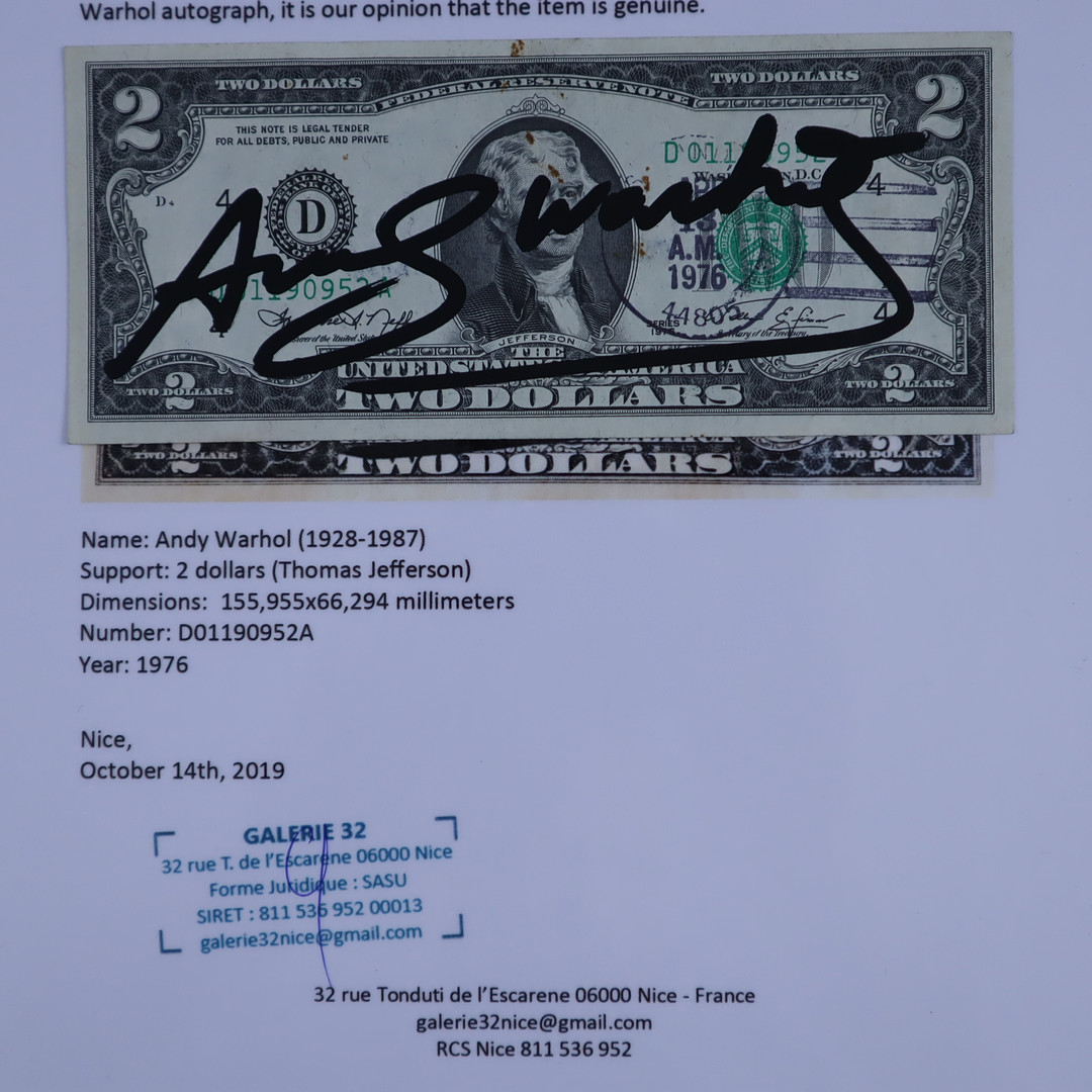 2292906. AFTER - WARHOL, ANDY. - "Two Dollar Bill".