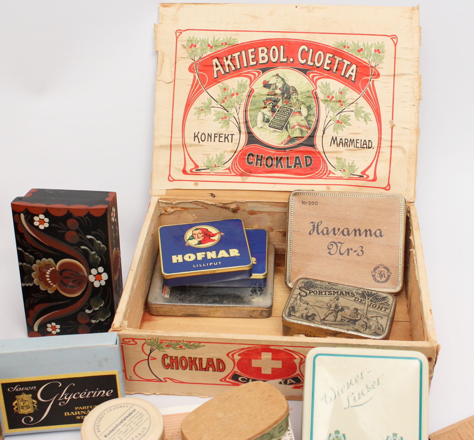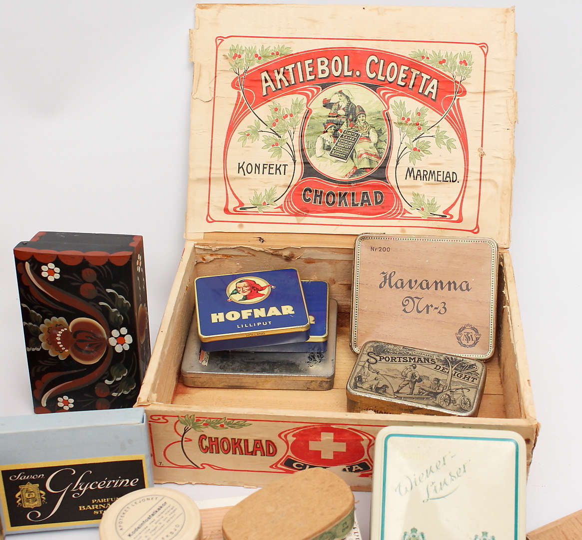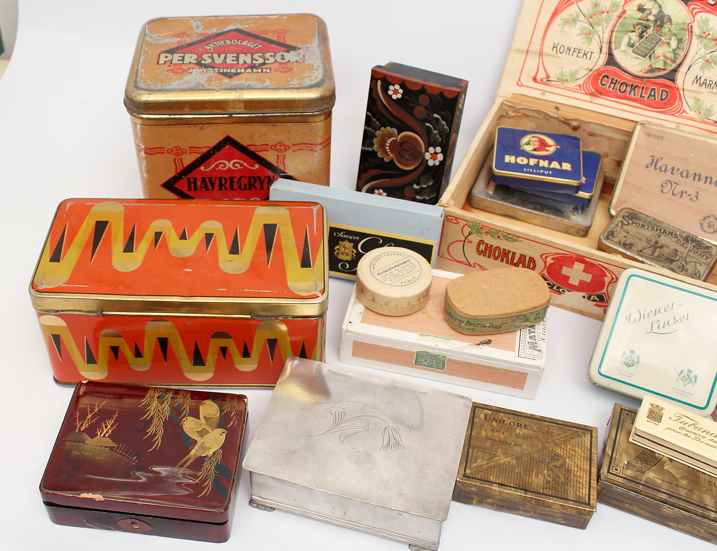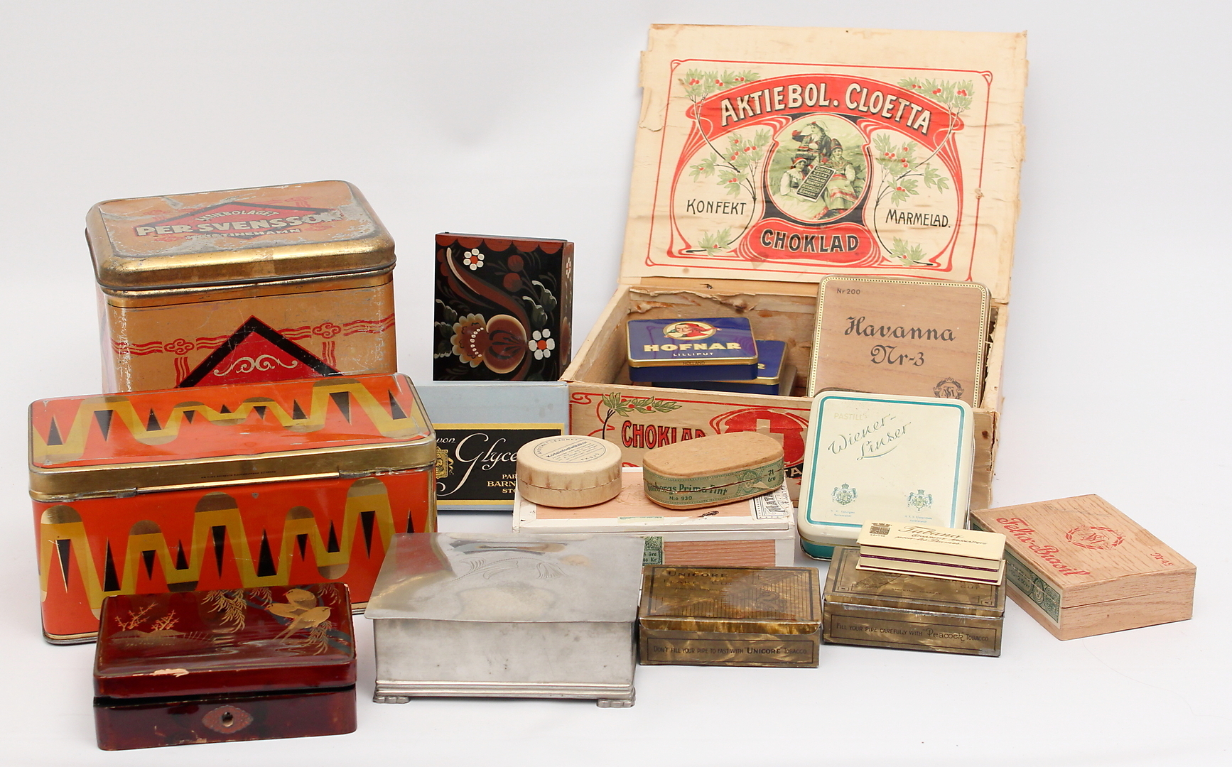 229507. SHEET CANS AND WOODEN BOXES, 19 pieces.