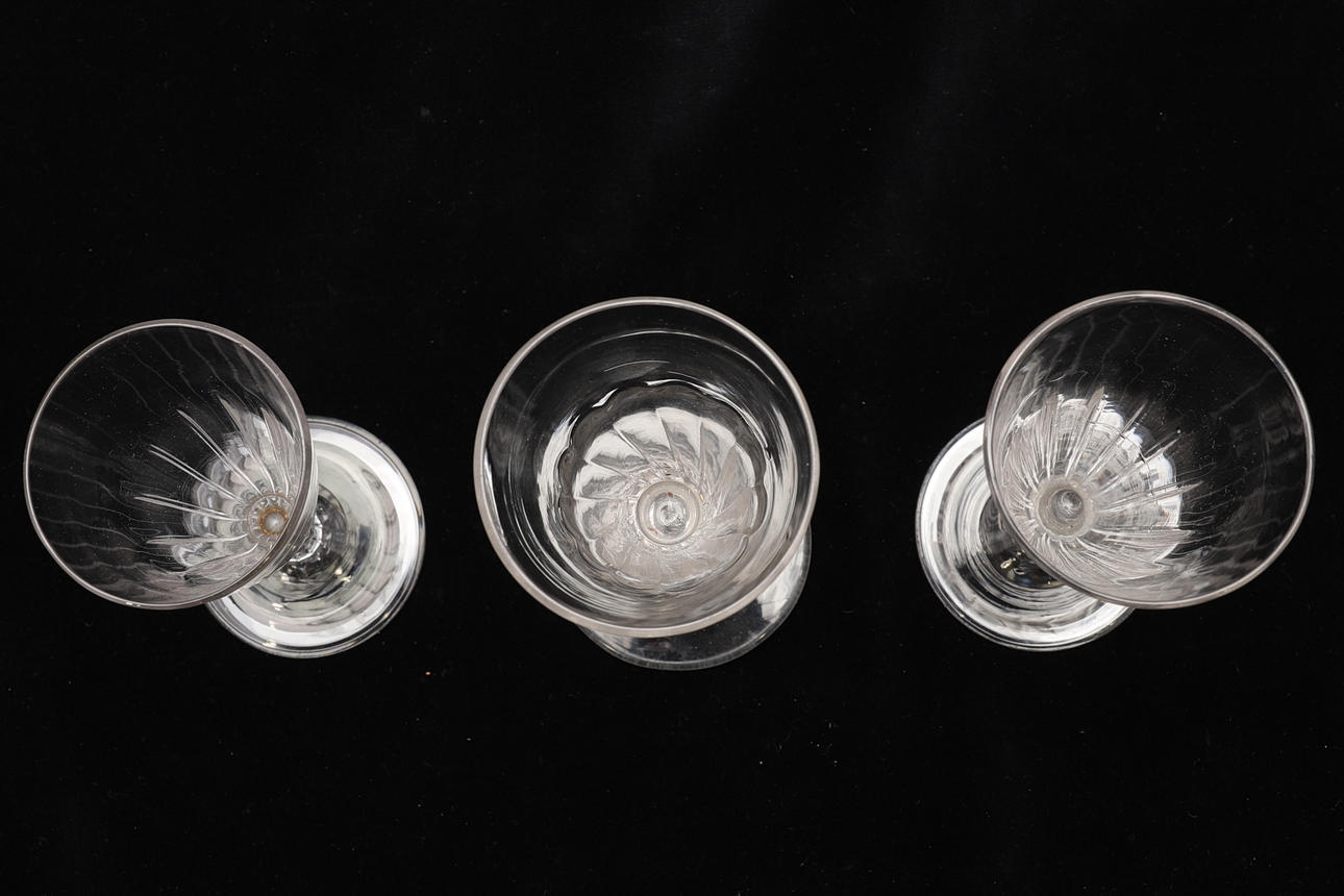Together with another ale glass with wrythen tapered bowl raised on a double knop stem and plain foot, 13.6cm high,