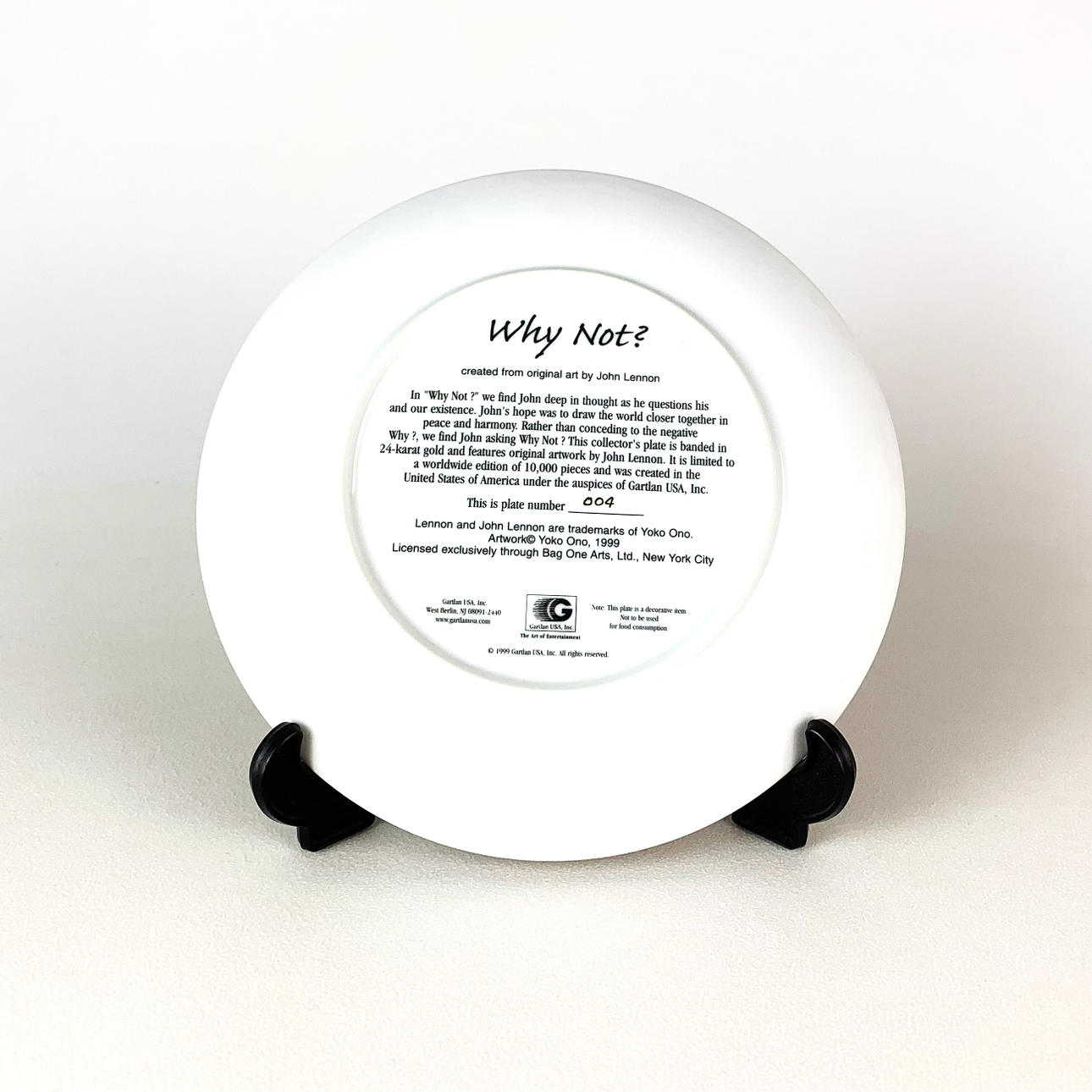 2297805. JOHN LENNON. WHY NOT? COLLECTORS PLATE.
