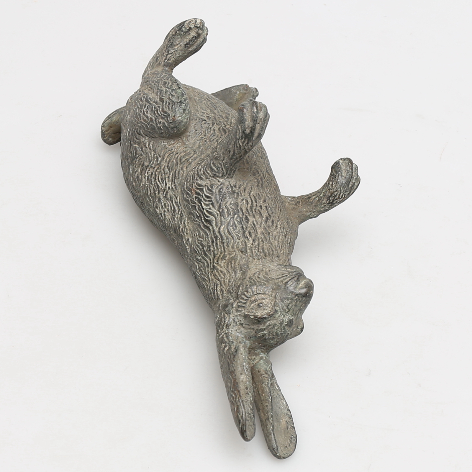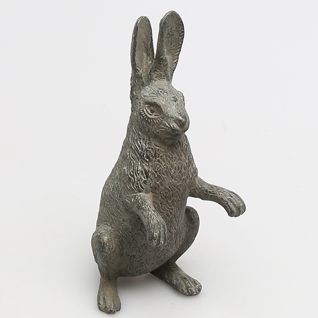 230386. OKÄND KONSTNÄR. Hare in green patinated bronze, unsigned.