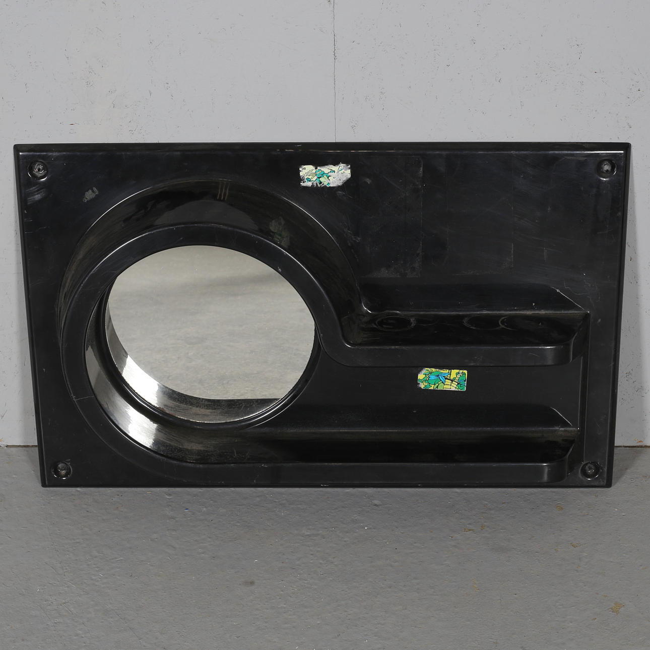 Molded plastic shelf with mirror. Height 49 cm Length 79 cm Depth 13 cm Labeled.