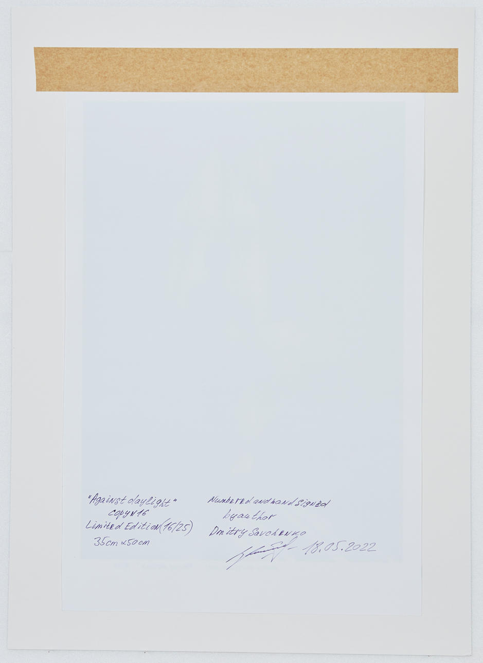 Dmitry Savchenko (b. 1970), photograph, 'Against daylight', Giclée on paper, 2022. Rear view of a ballet dancer in an interior with a window by day, signed, dated and edited '16/25' in Bei lower right, as well as inscribed on the reverse and provided with an artist's certificate, 35x50cm (50x70cm).