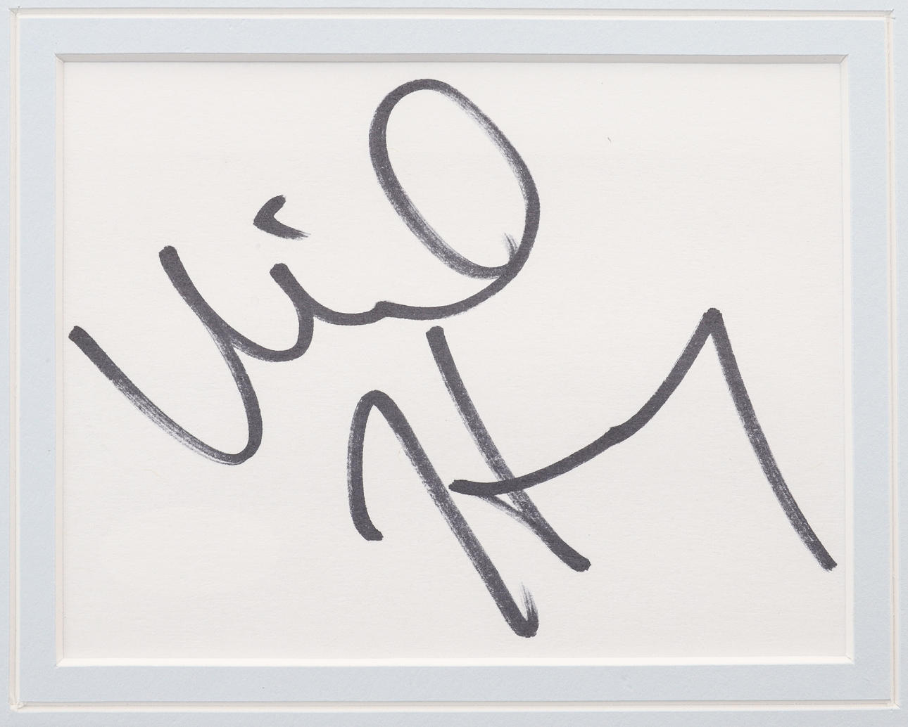 framed below a printed picture of the character he voices in 'Family Guy', 'Herbert', 29cm x 36.5cm overall.