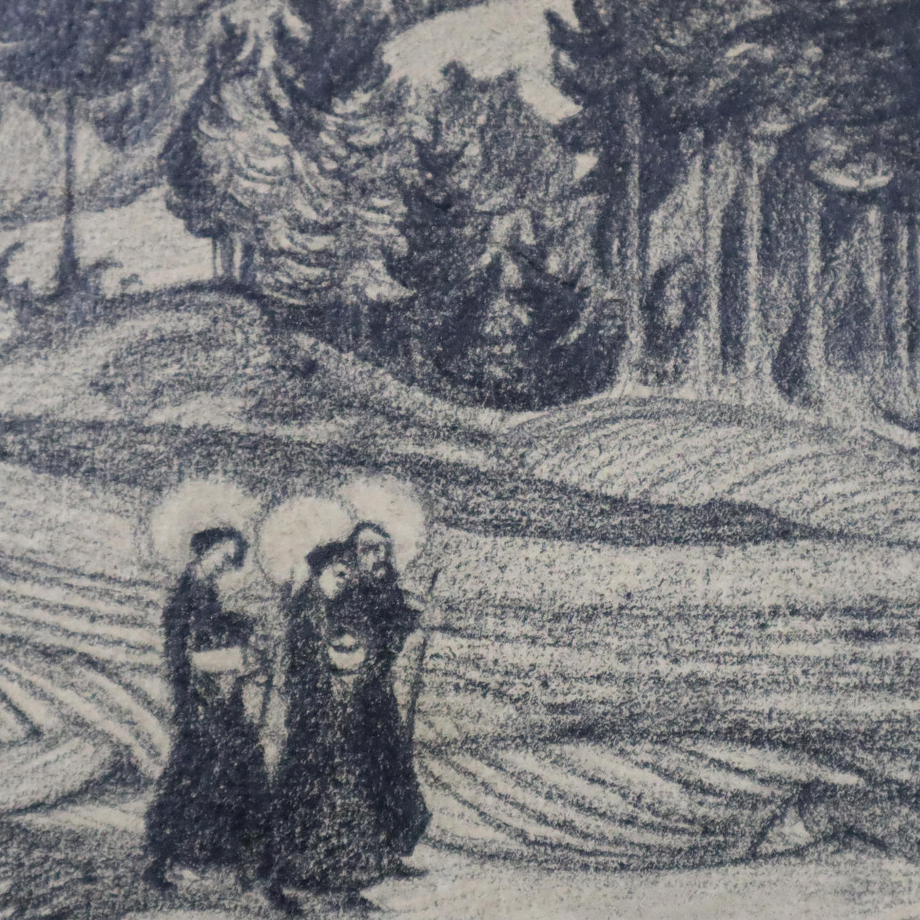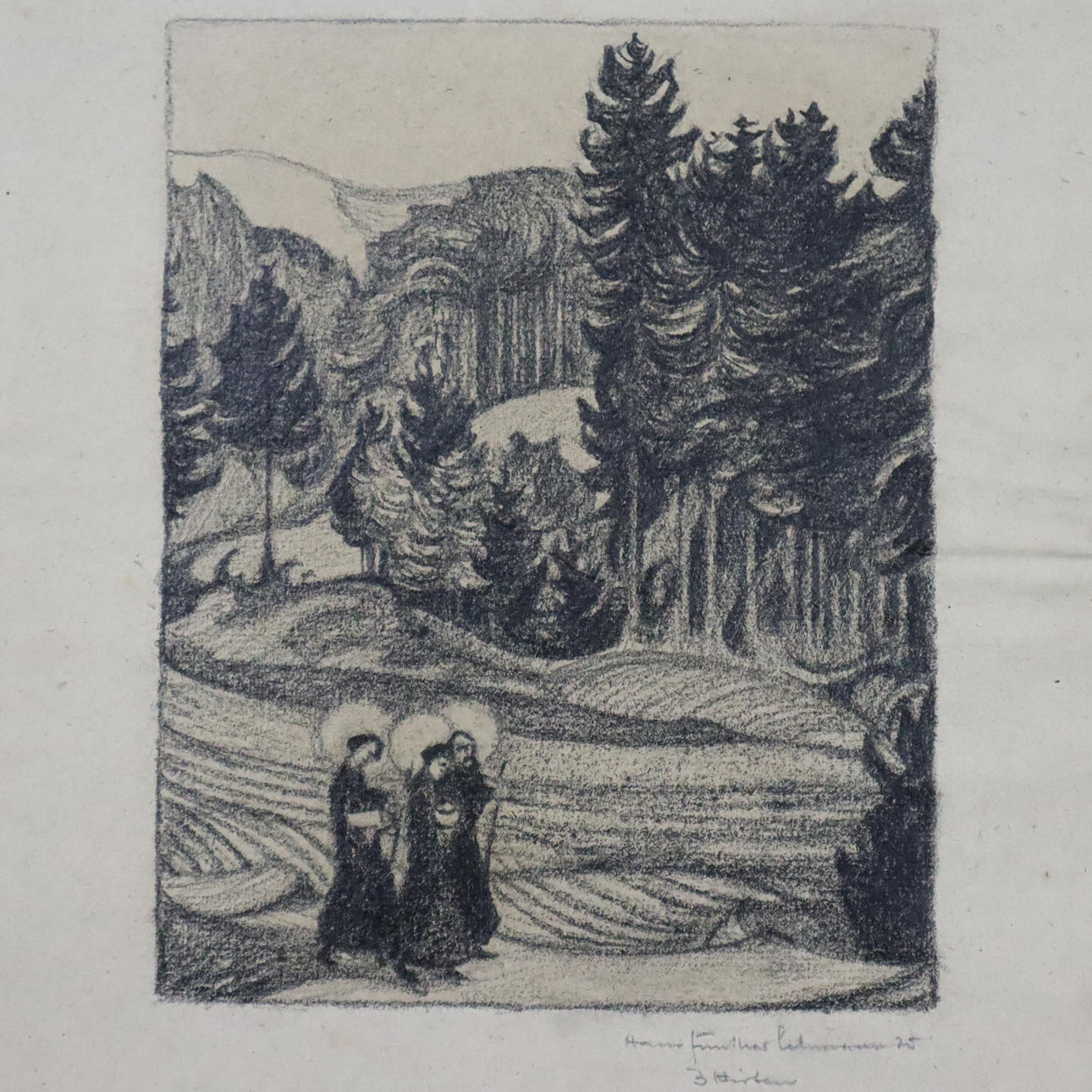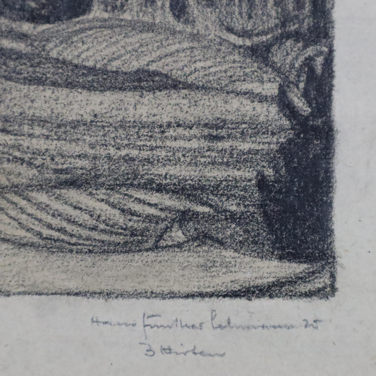 1x “3 Shepherds”, charcoal on paper, indistinctly signed “Hans Günther Lehmann”? and dated '25', sheet size approx. 35x22cm,