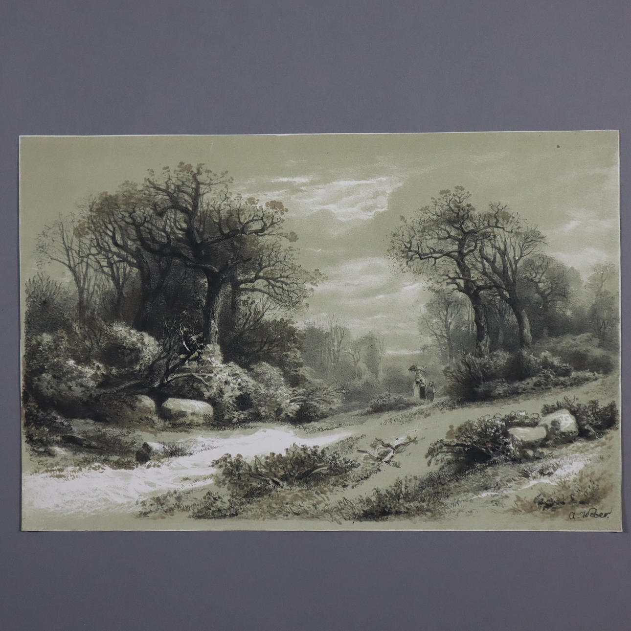 1x A.Weber, mother and child on the forest path, lithograph, signed at the bottom right in the plate, sheet size approx. 23.5x35.5cm