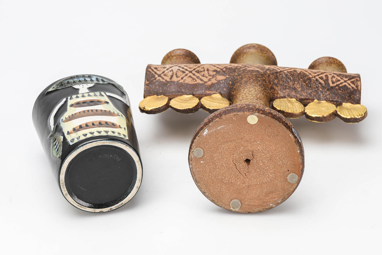LISA LARSON. Vase and candlestick, glazed stoneware, Gustavsberg.