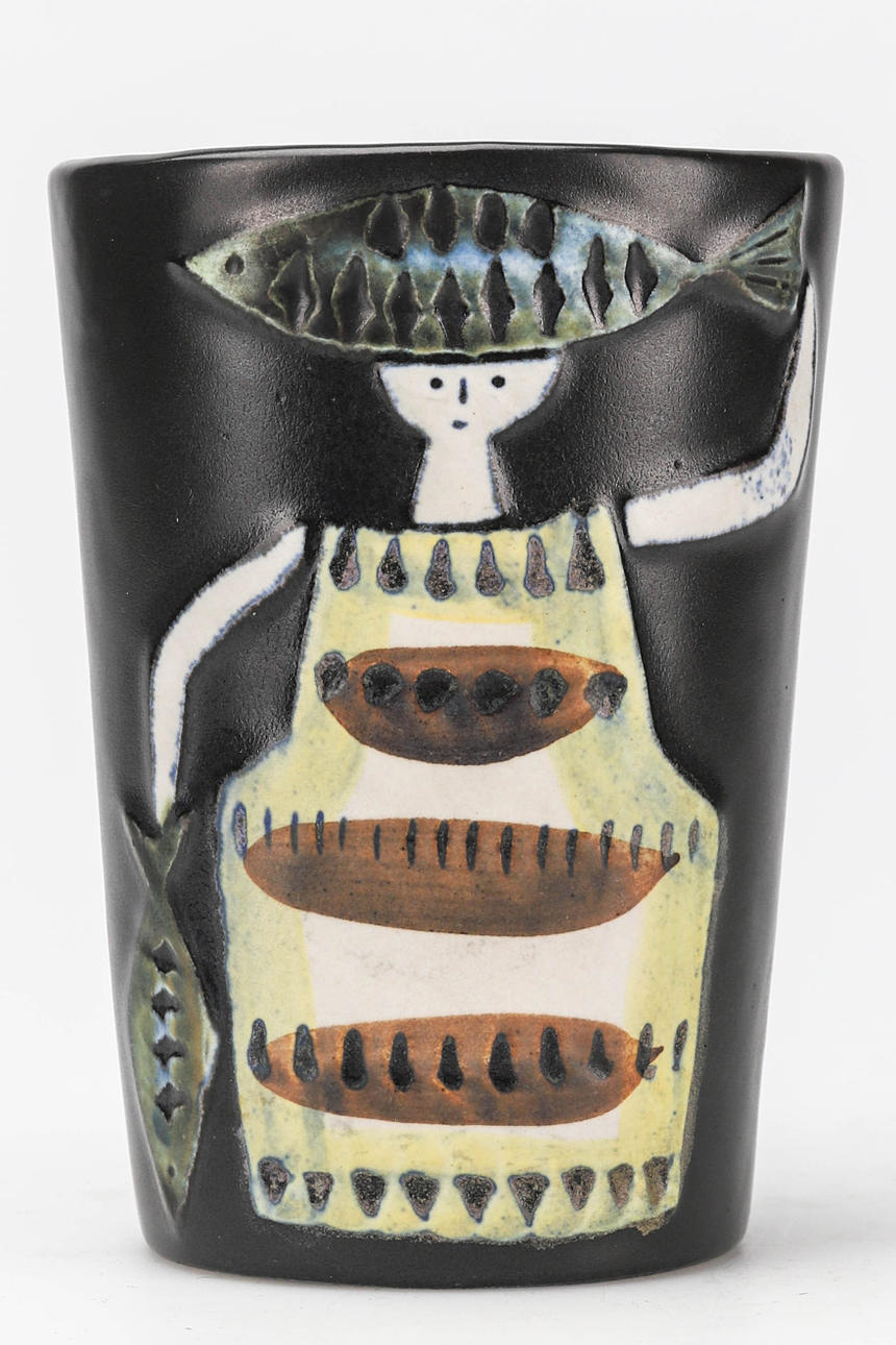 Vase with woman with fish from the series "Varieté", 14 cm high.