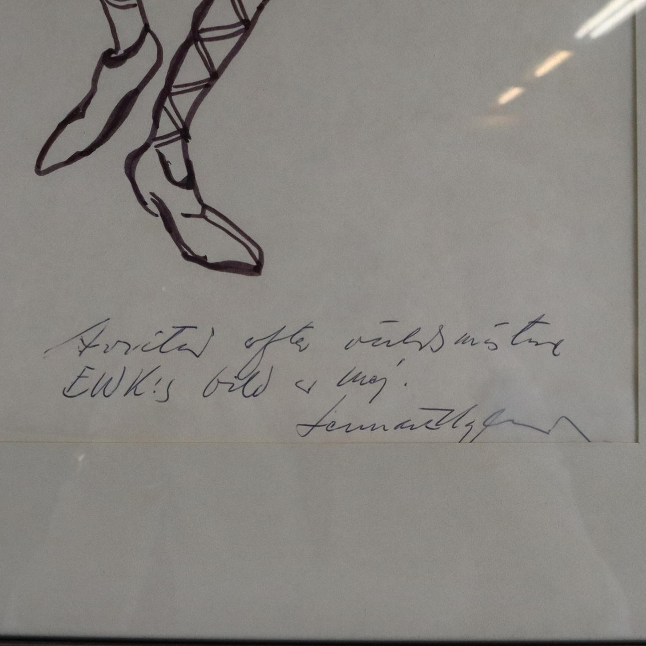 According to information, Lennart Hyland has been asked to draw a self-portrait in connection with a fundraiser. When he, as the text below testifies, found his knowledge limited, he chose to draw an earlier portrait of him by artist Ewert Karlsson 30x40 cm.