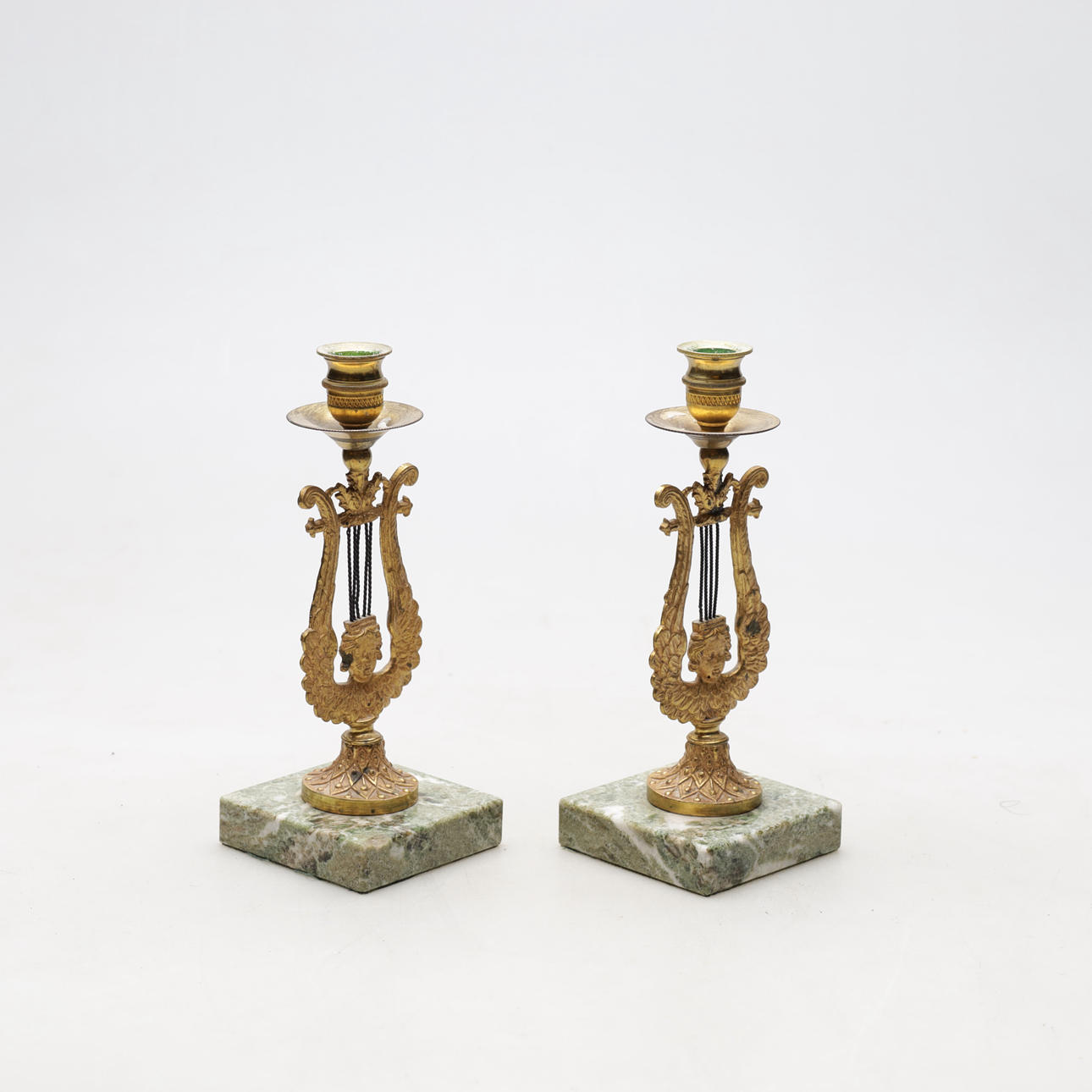 2323402. CANDLES, 1-pair, gilded brass, lyre model.