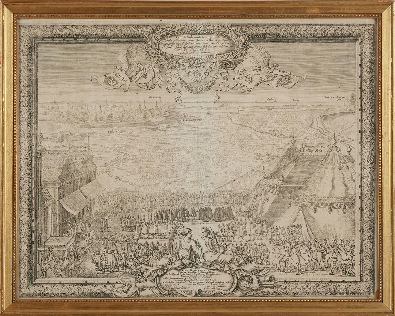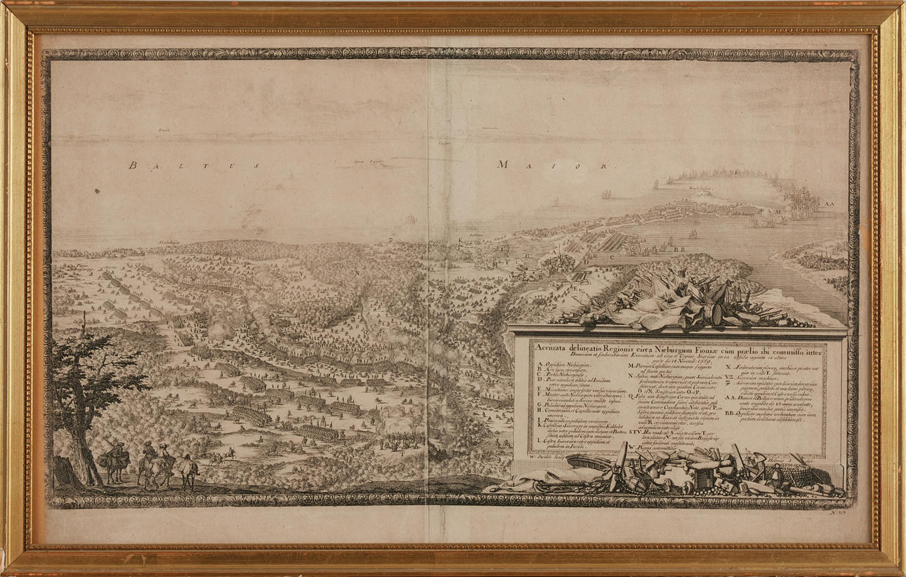 ENGRAVINGS FROM PUFENDORF, 4 engraved plates, approx. 1697, i.a. the battle of Pugna, Typus Solenaitatum.. (Oresund). Among other things engraved by Wilhelm Swidde. About 285x375 mm. Framed.