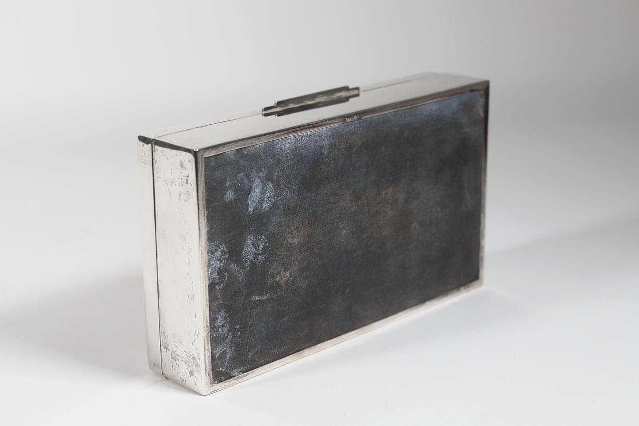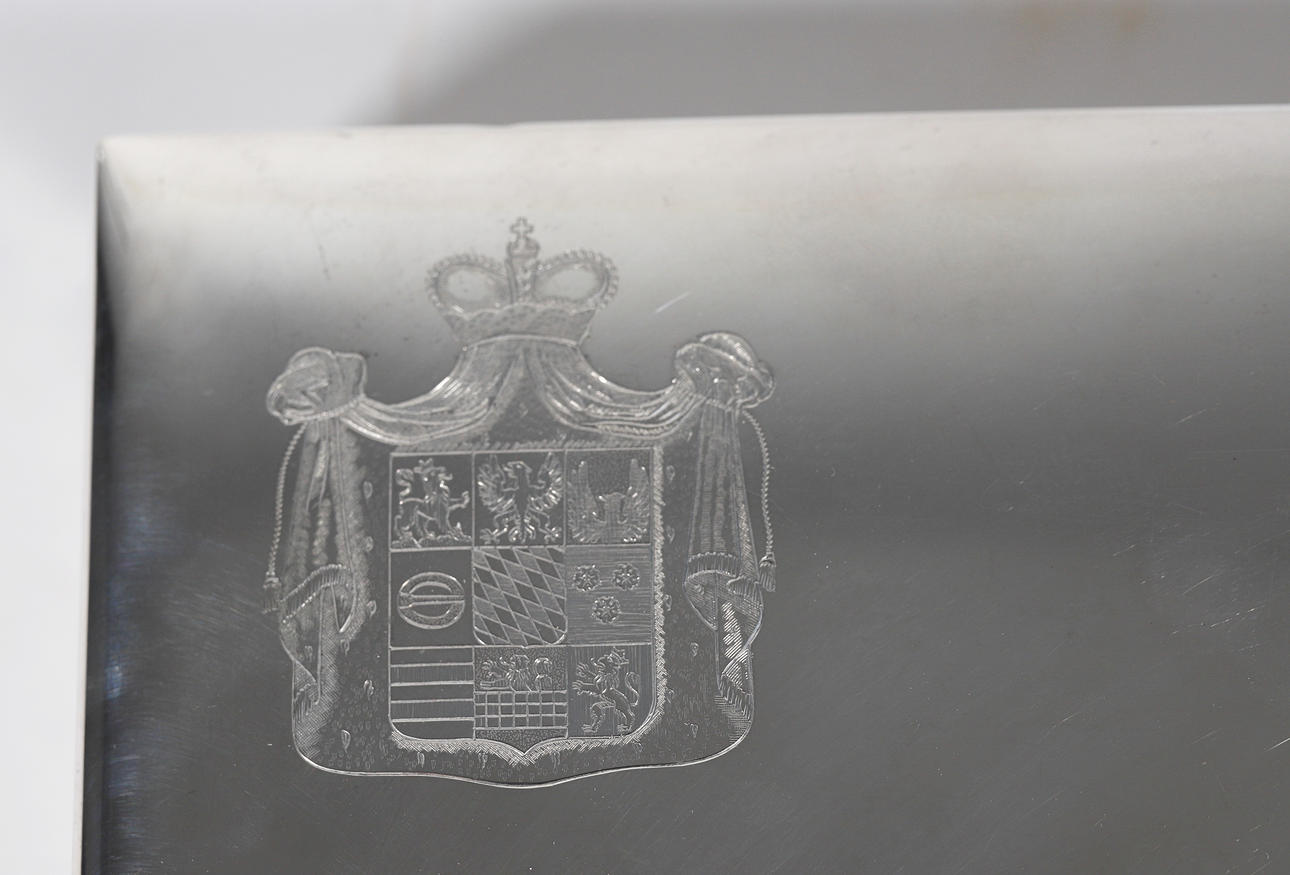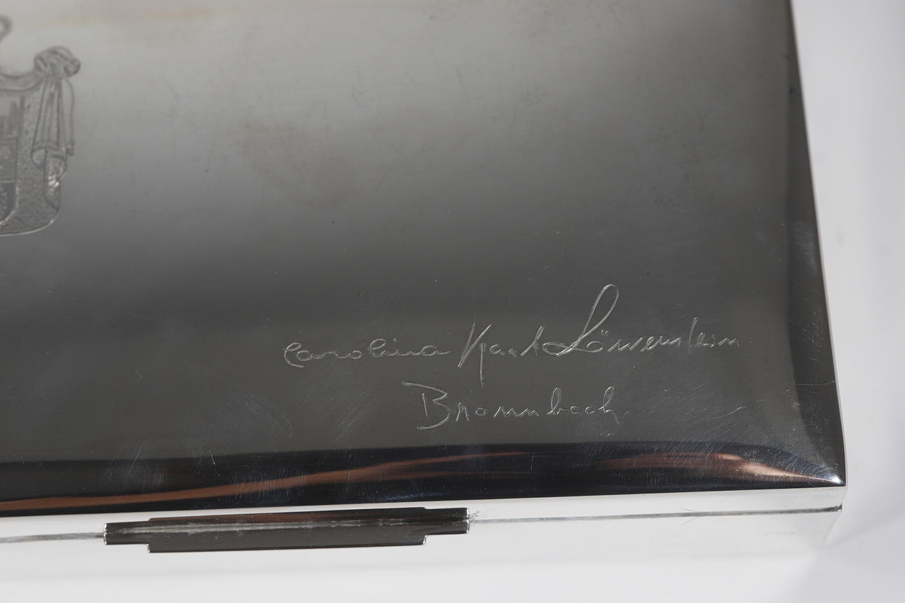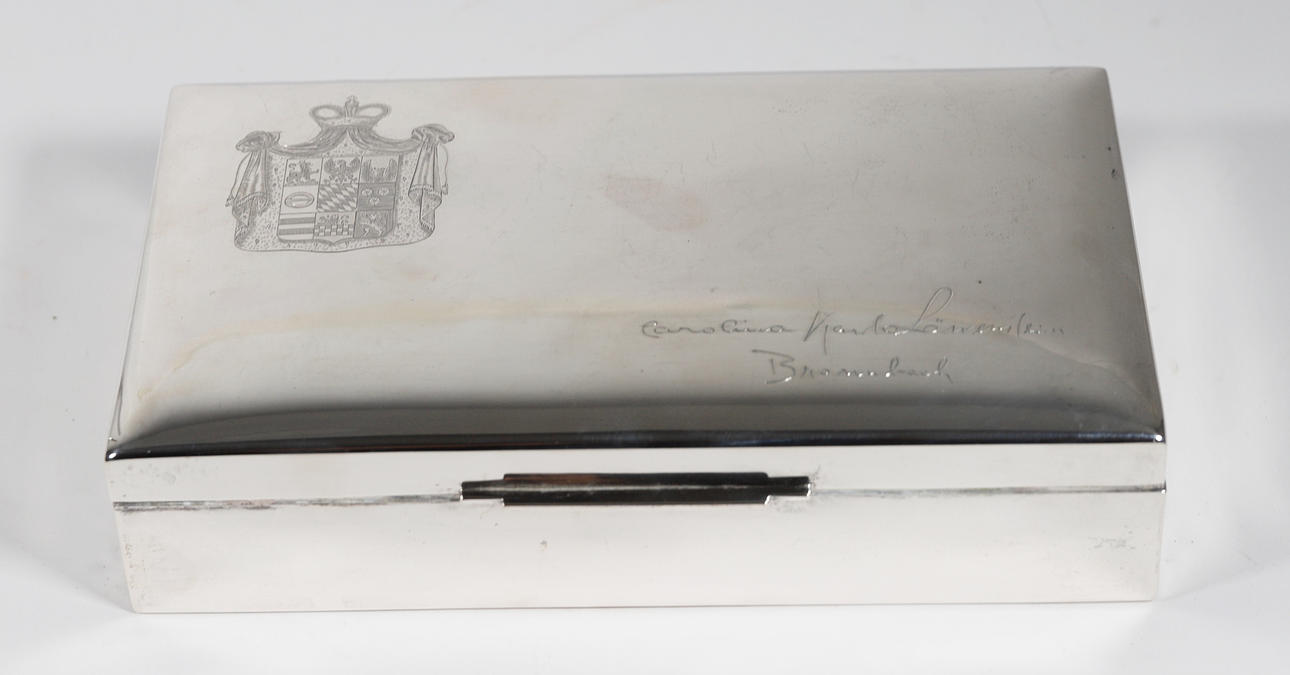 2327561. SILVER CIGARETTE BOX CIRCA 1900 WITH SHIELD AND SIGNATURES.
