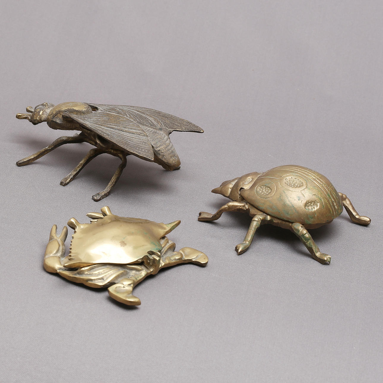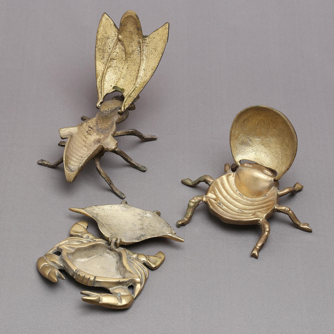 2330054. ASH DISH, 3 pcs, brass, fly, crab, beetle. 1900s.