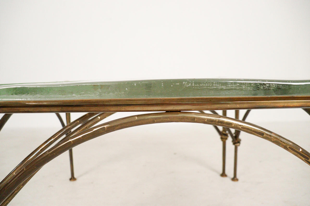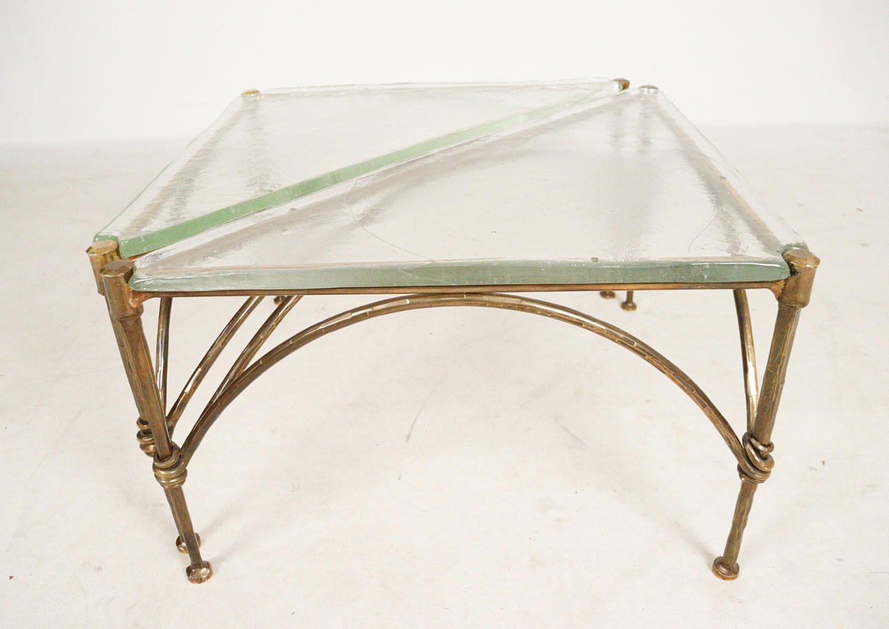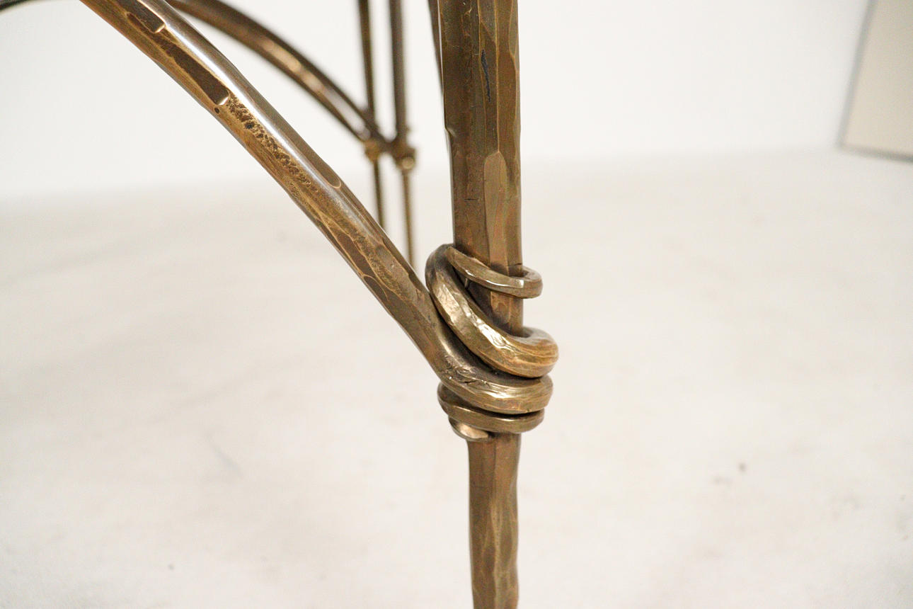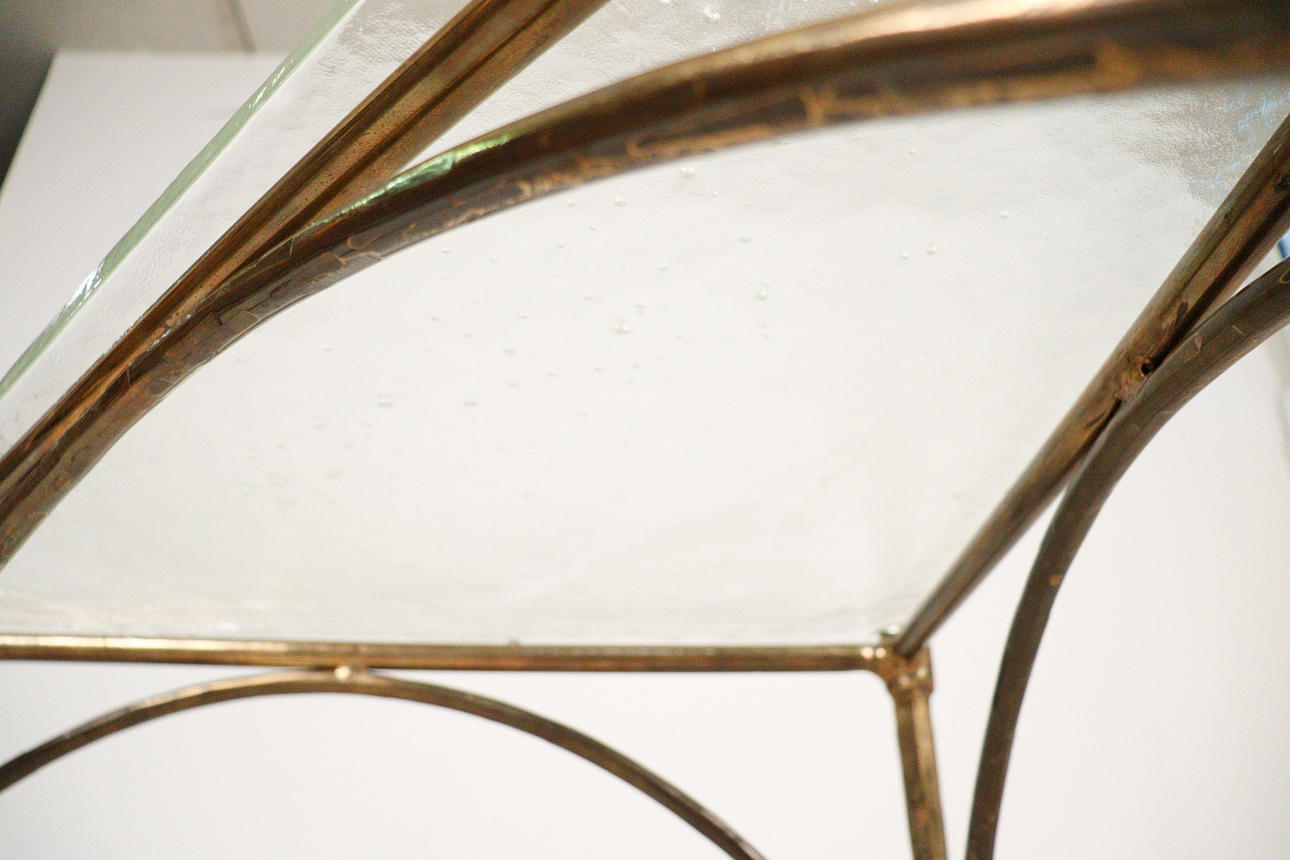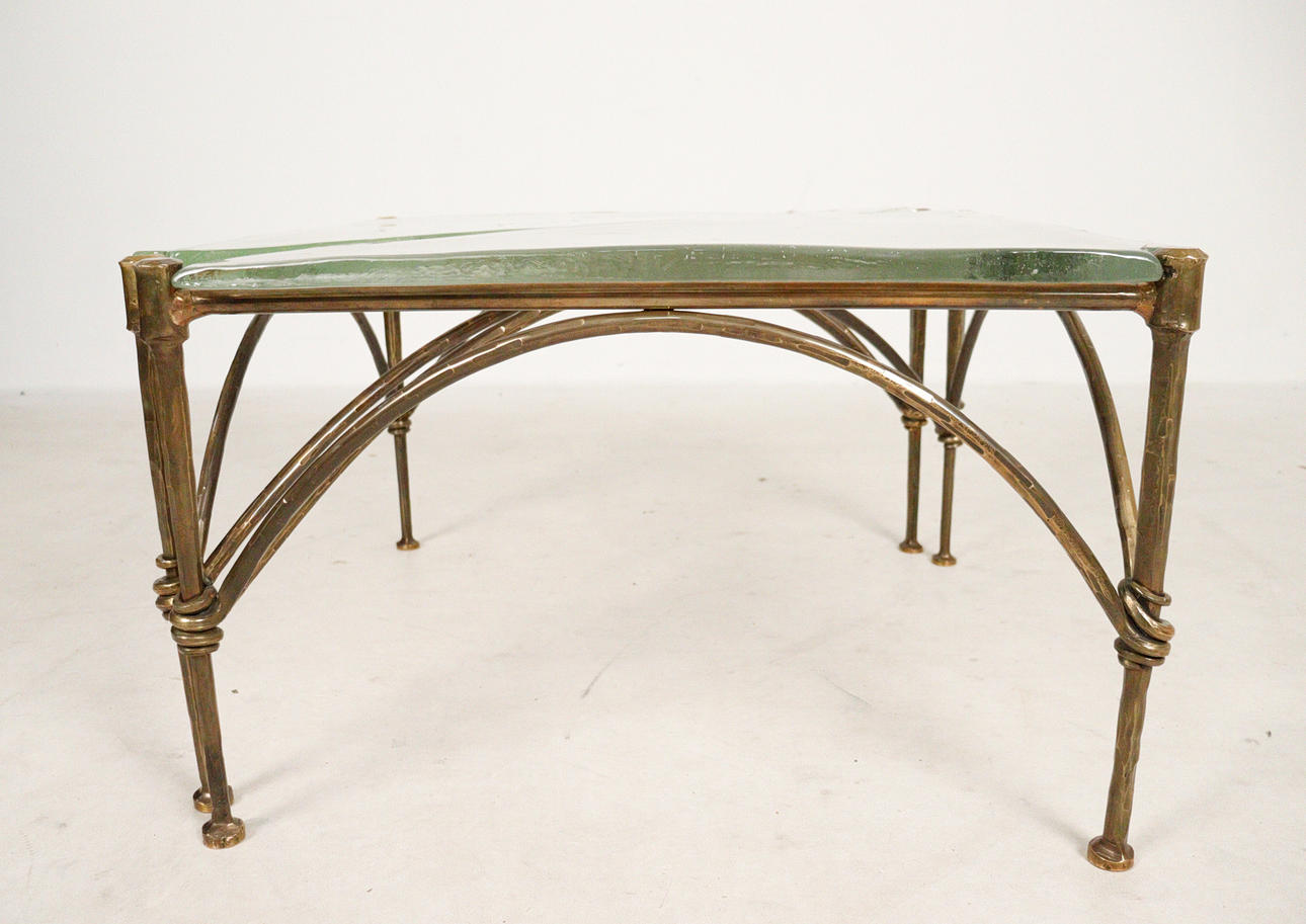 Lothar Klute, Brutalist side tables from the 1960s, solid construction made of hand-forged bronze with loose cast lead crystal plates, dimensions approx.: H. 48 cm, W: 80 x 80 cm.