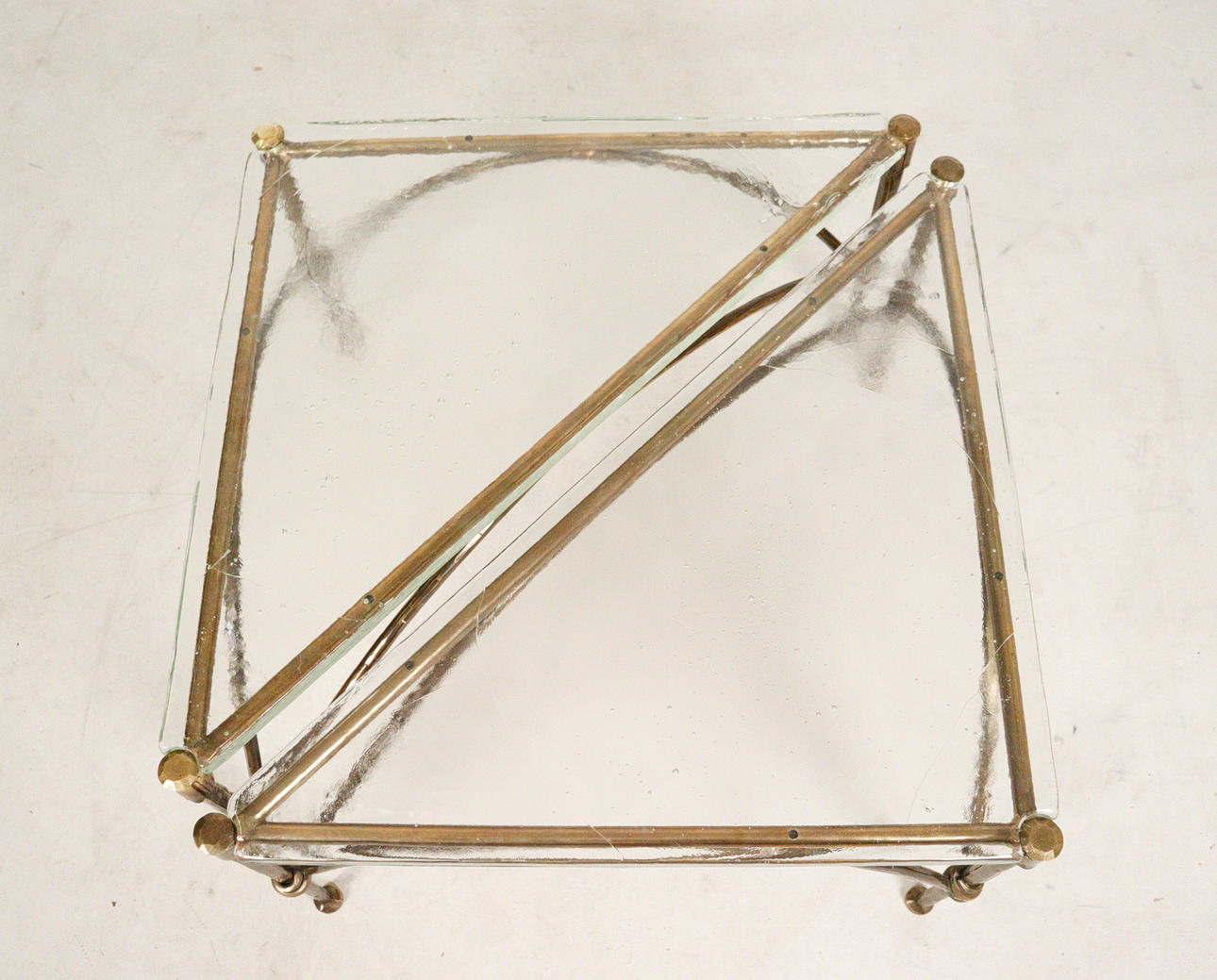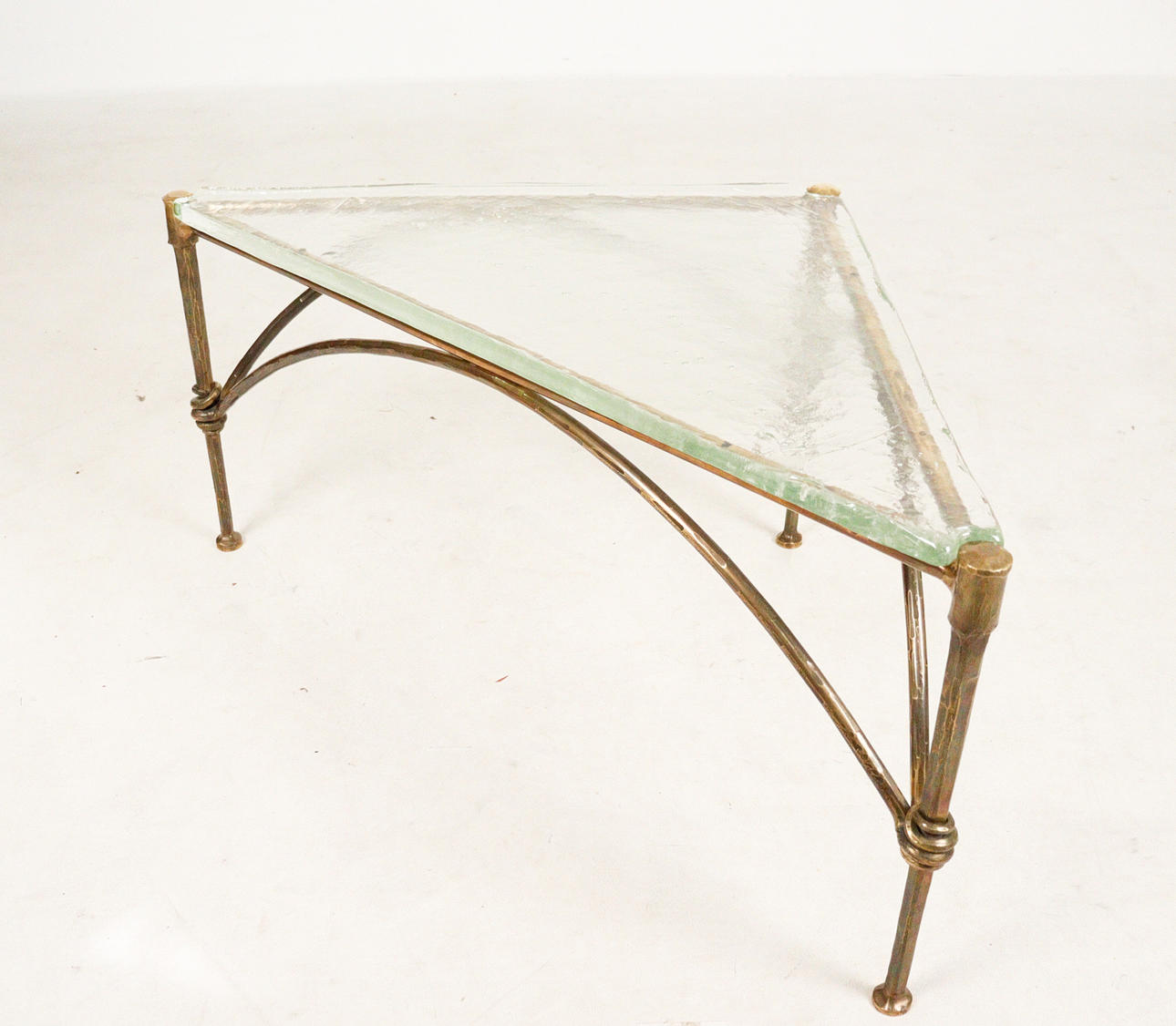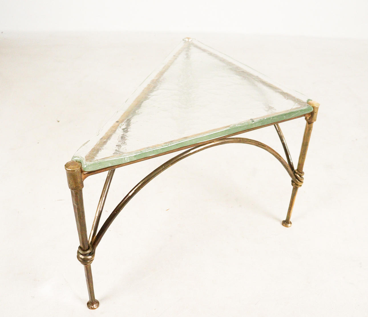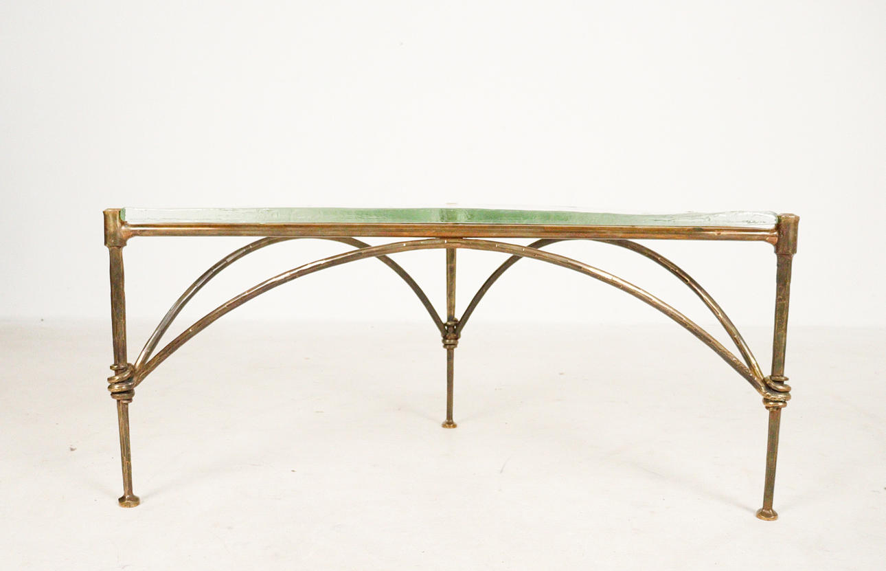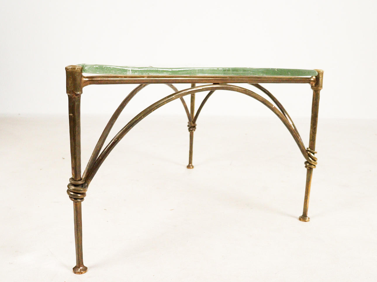 Lothar Klute, Brutalist side tables from the 1960s, solid construction made of hand-forged bronze with loose cast lead crystal plates, dimensions approx.: H. 48 cm, W: 80 x 80 cm.