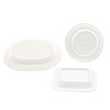 pearlware dish, small hairline crack to underside of rim, meat dish, staining and discolouration in places, chip to underside of rim, soup plate, typical signs of wear.