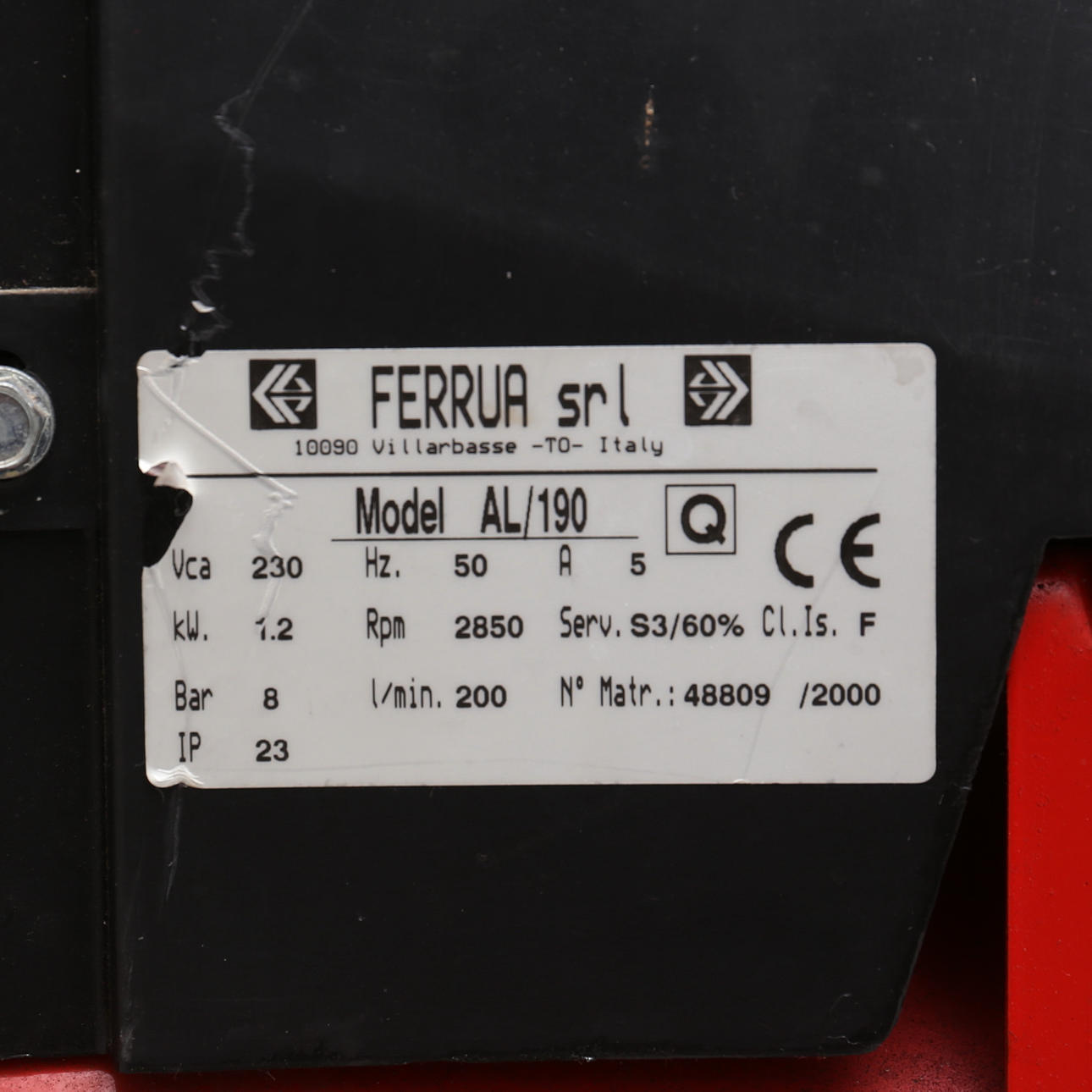 2330905. COMPRESSOR, Ferrua, model AL 190.