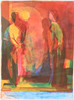 ELISABETH JANSSON. Talking couple, color lithograph, signed.