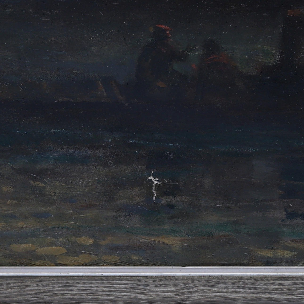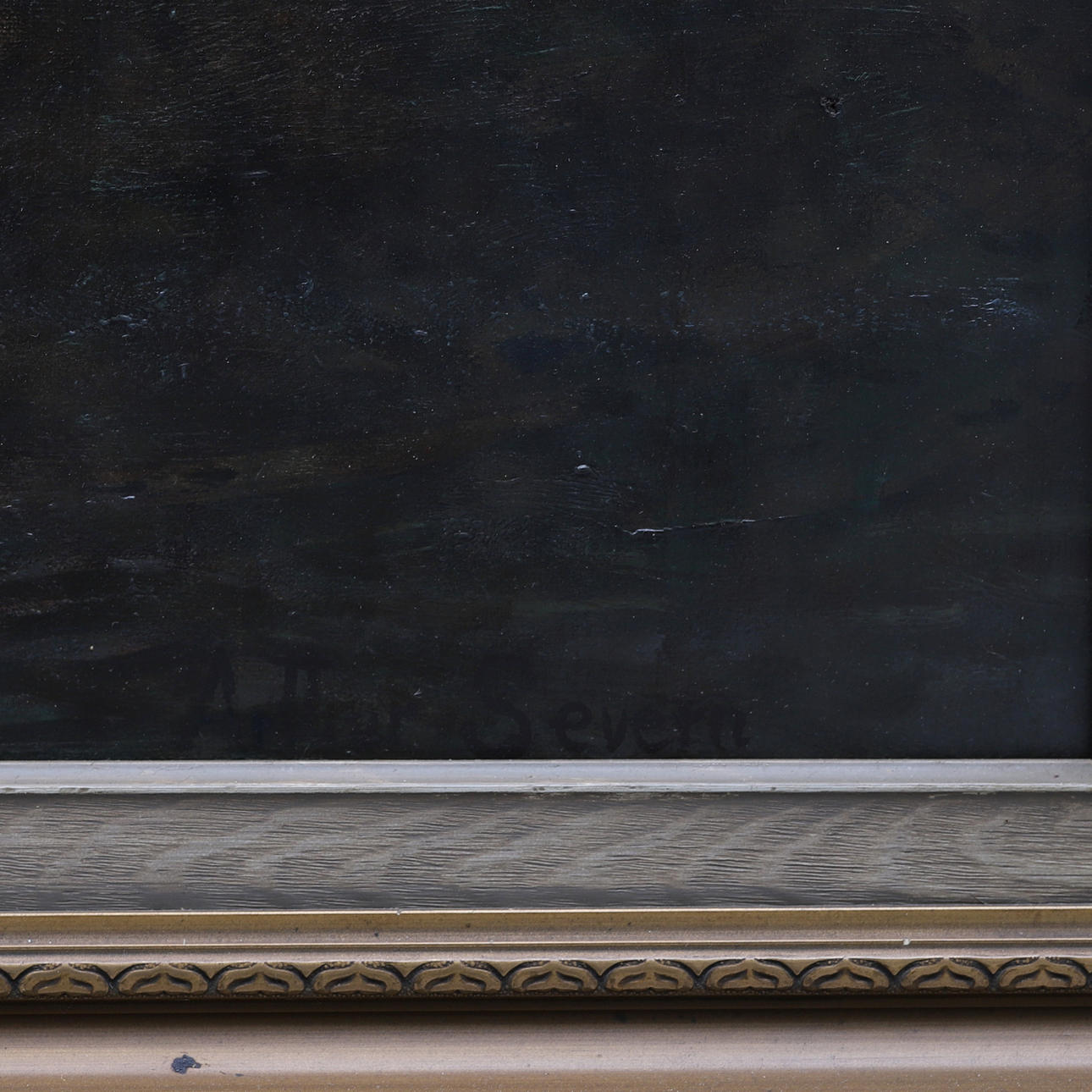 The painting has been reduced at the top and bottom, the signature is on the overweight part on verso. Signature on the front of the painting is later.