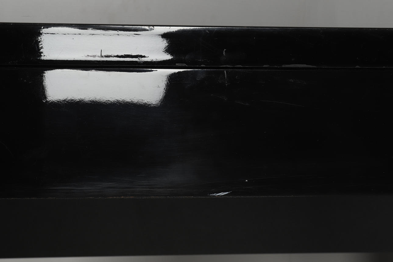 2339077. A HIGH GLOSS FINISH SINGLE DRAWER CONSUL TABLE.