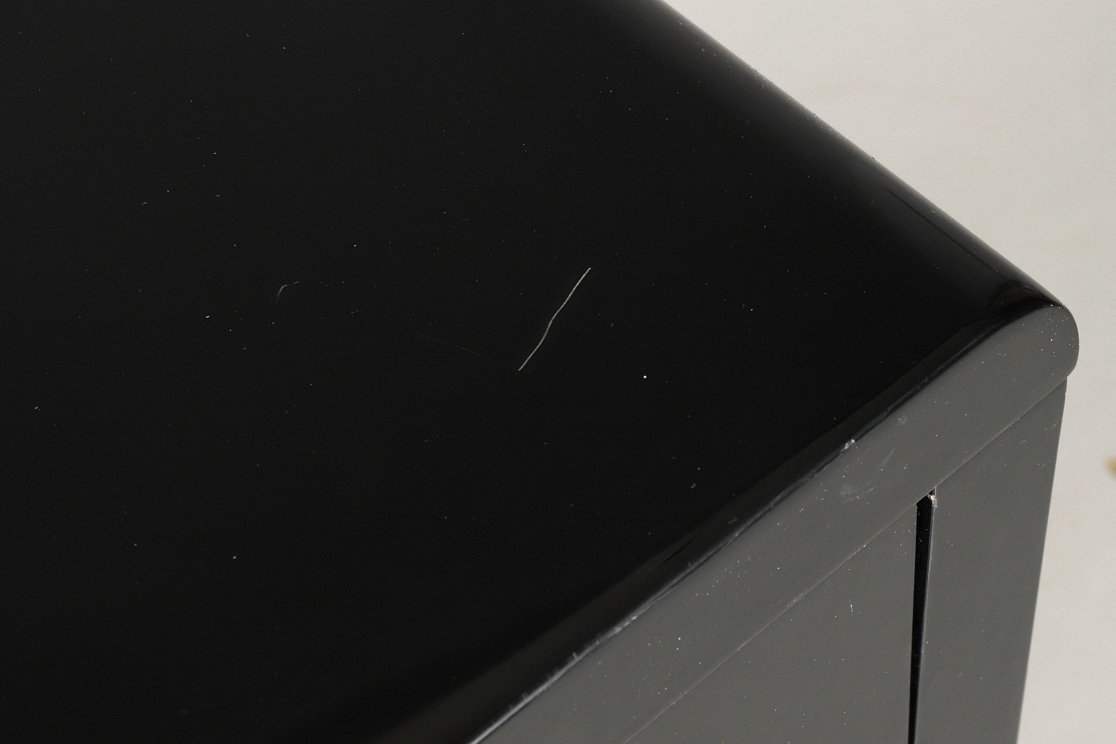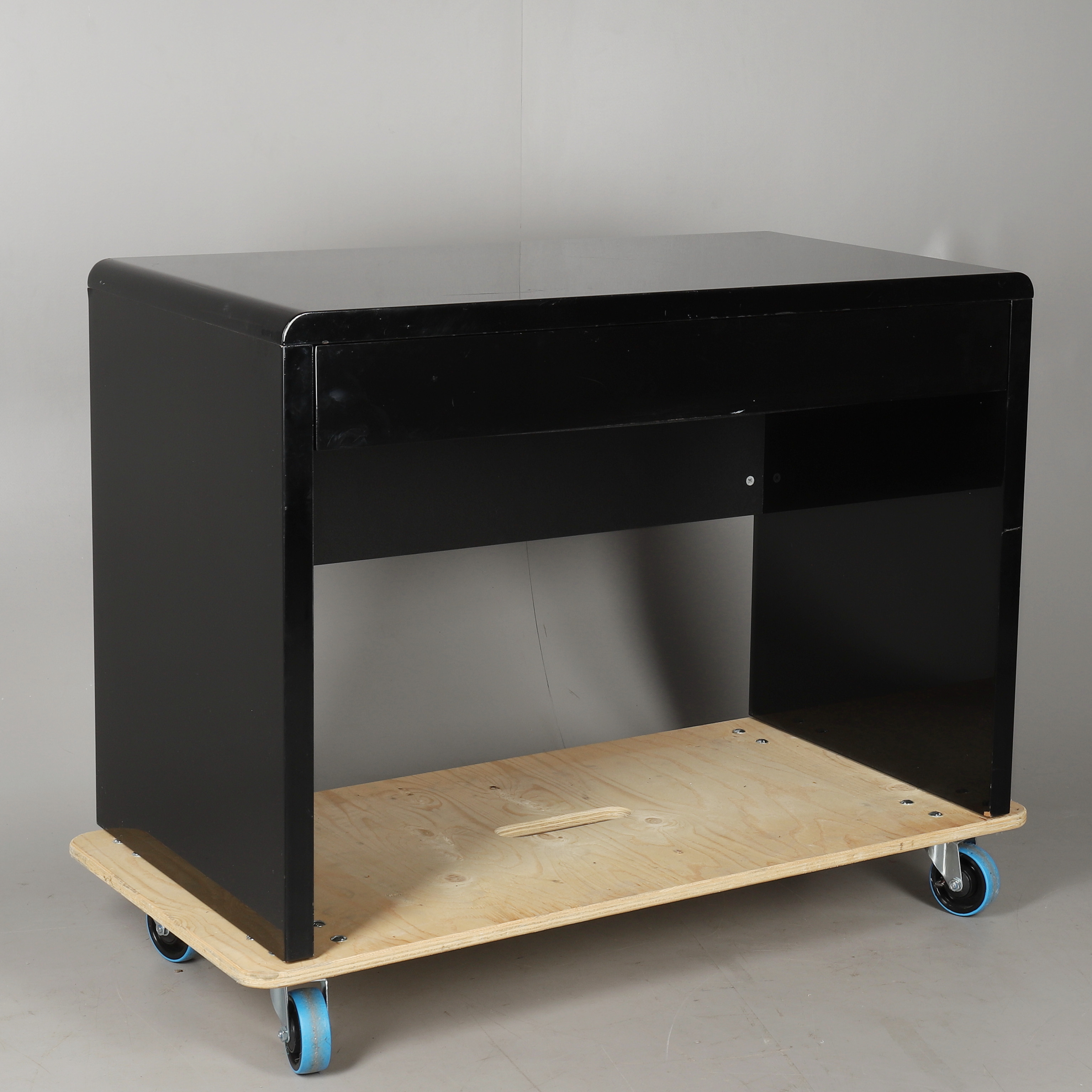 2339077. A HIGH GLOSS FINISH SINGLE DRAWER CONSUL TABLE.