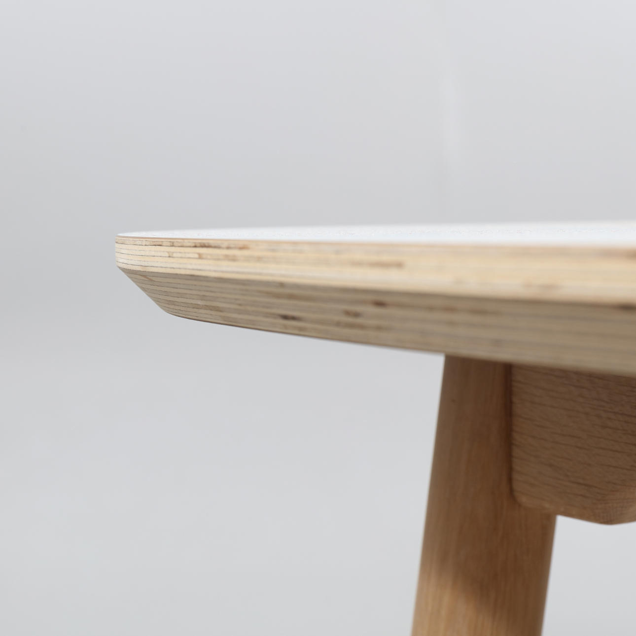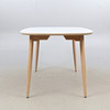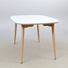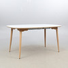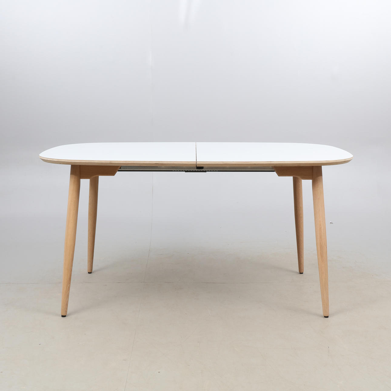 Table from Haslev, "Timeless", with legs in white oiled oak and top in laminate. Two extension leaves.