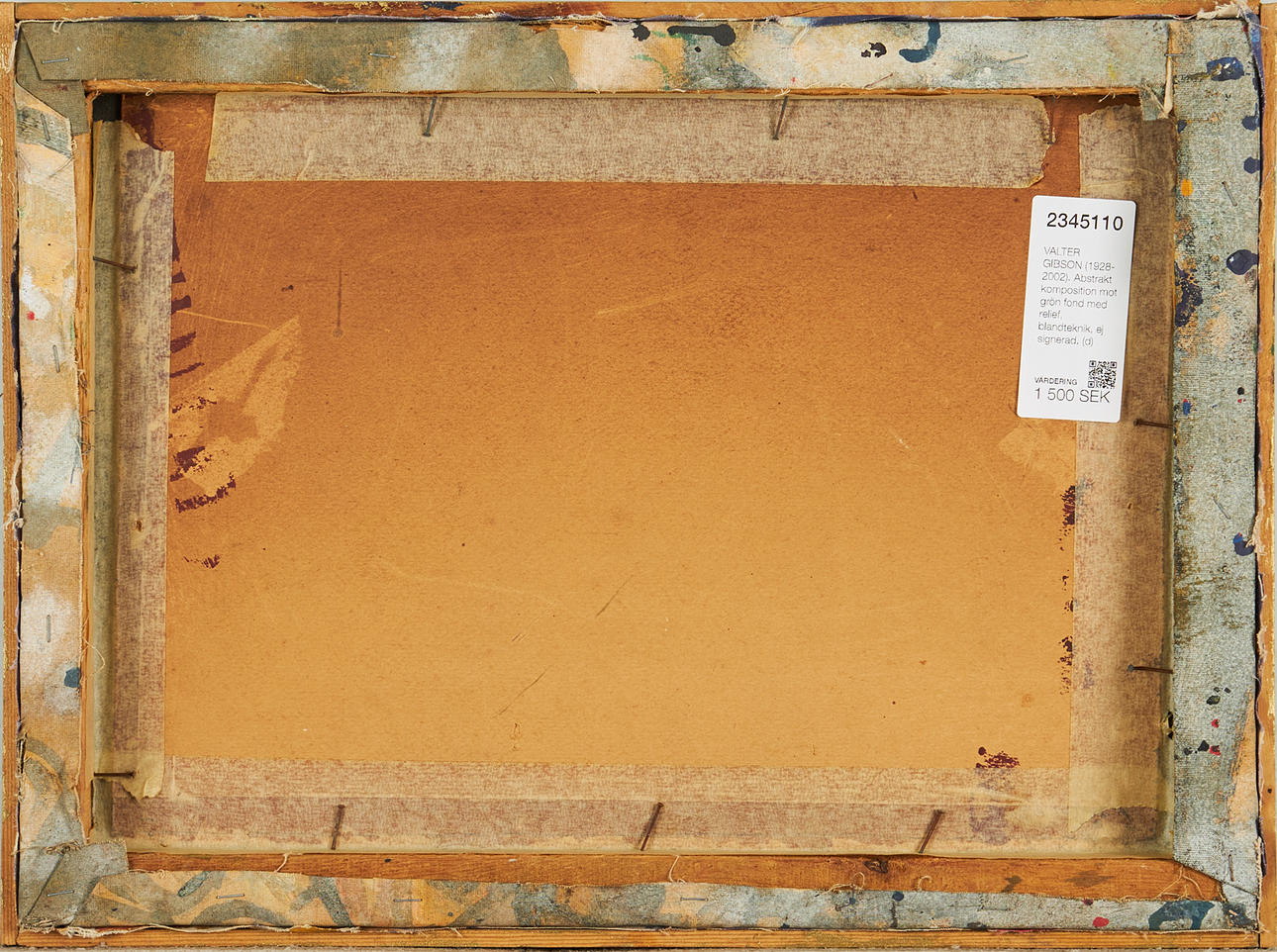 Valter Gibson was born in 1928 in Lycksele, grew up in Stockholm and lived until his death in 2002 in Hallstavik. In the years 1952-1955, Gibson studied painting at the Valand Art School in Gothenburg, with the prominent artist Endre Nemes as teacher. Gibson belonged to the "generation 47-55" and was a member of the artists' association Grupp 54. It was founded by Nemes students who opposed the Gothenburg Artists' Club which was dominated by the Gothenburg Colorists and who opposed the new abstract and surrealist art.