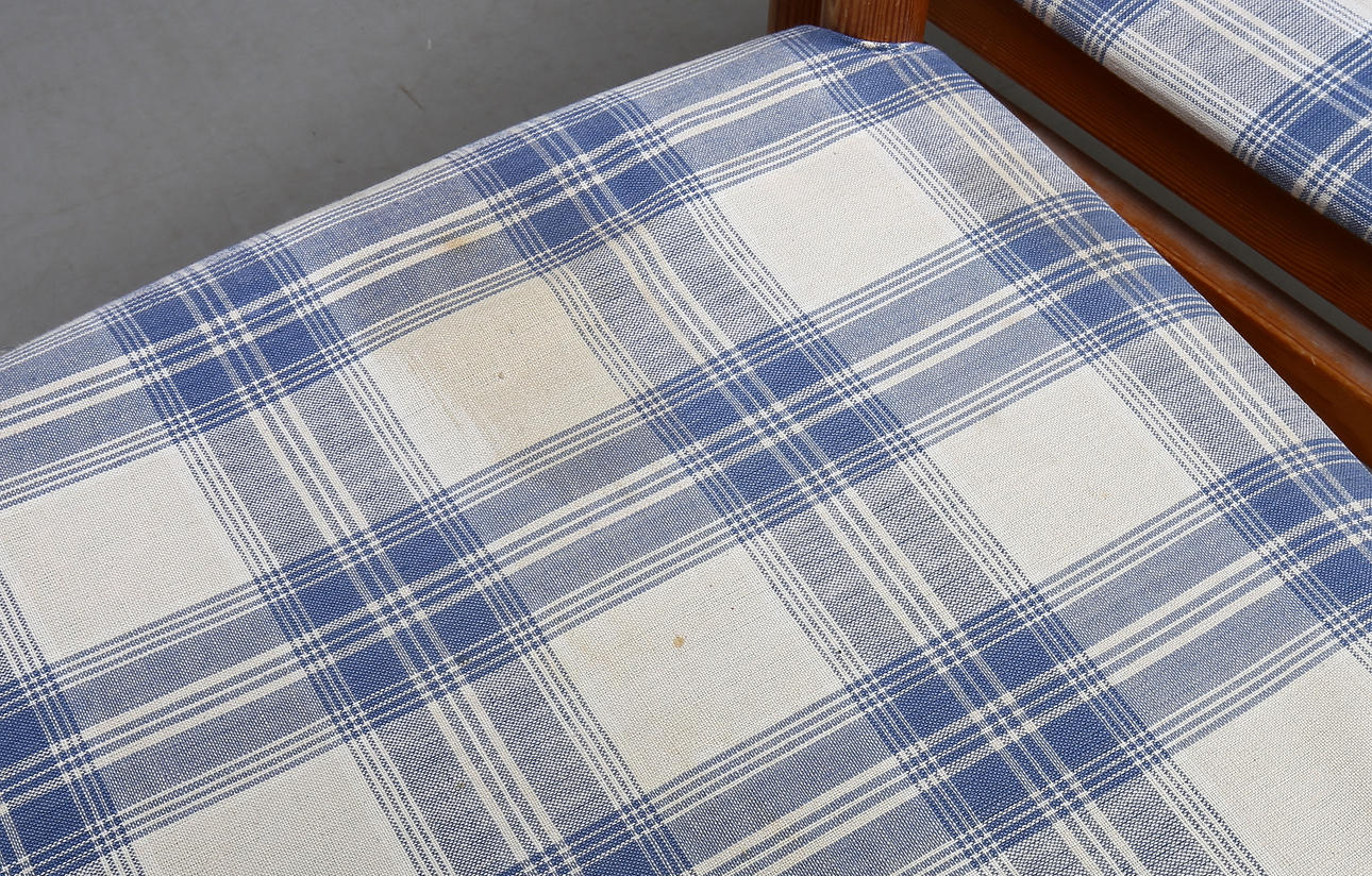 Turned legs, coupled. Openwork back. Loose upholstered and upholstered seat. Seat height 43 cm.