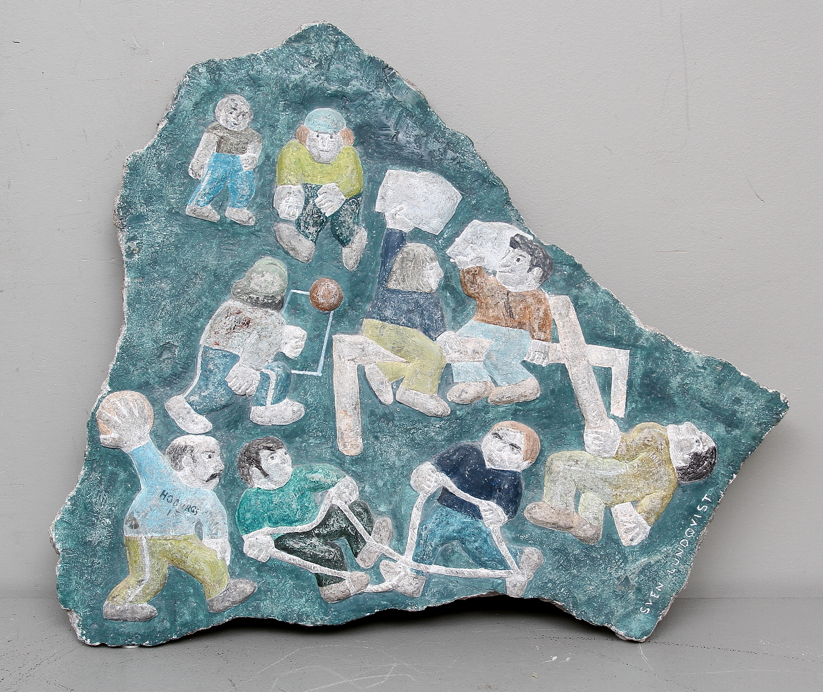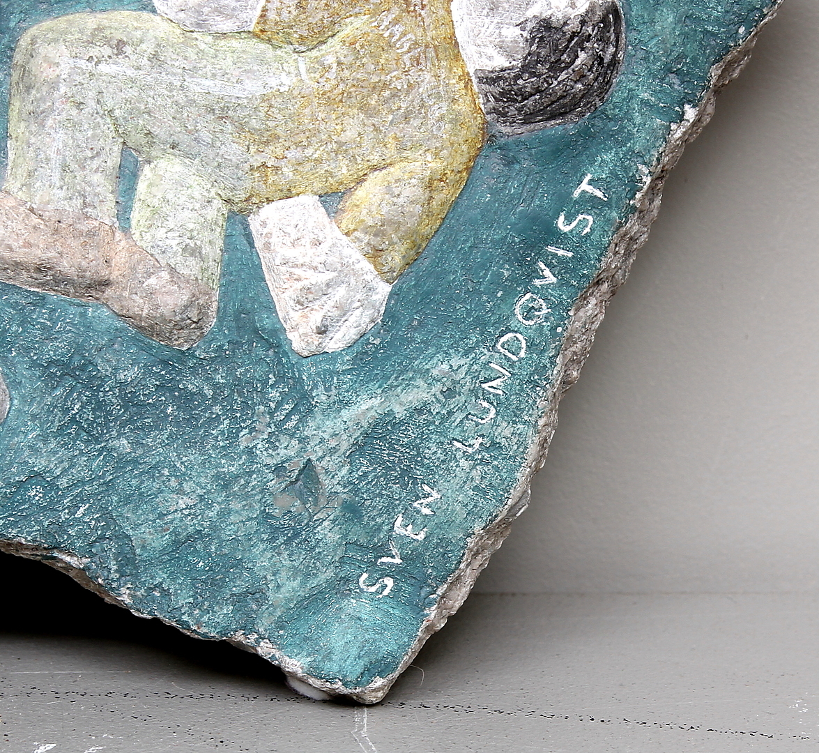 234647. SVEN LUNDQVIST. WALL RELIEF, painted stone, signed.